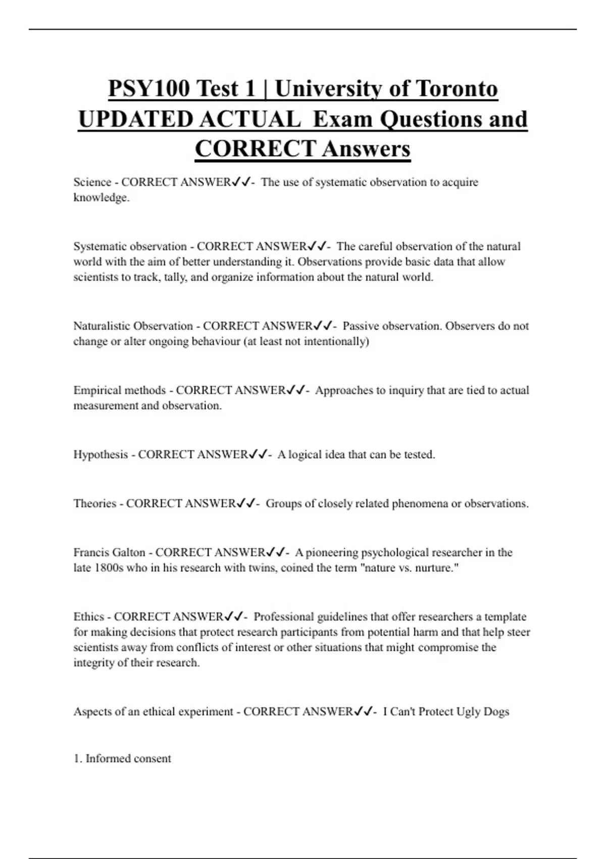 Aspects of an ethical experiment - CORRECT ANSWER✔✔- I Can't Protect Ugly Dogs