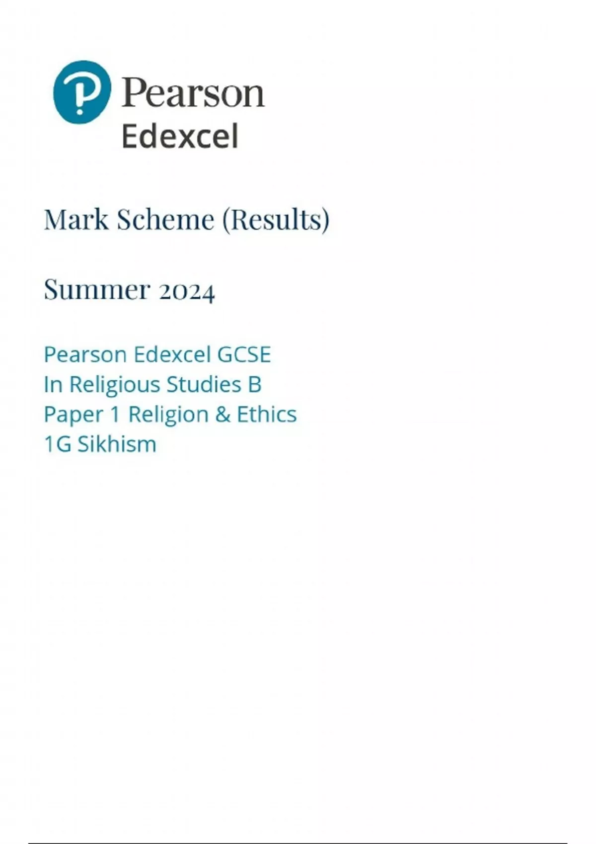 2024 EDEXCEL GCSE RELIGIOUS STUDIES B PAPER 1 OPTION 1G: SIKHISM INCLUDING MARK SCHEME