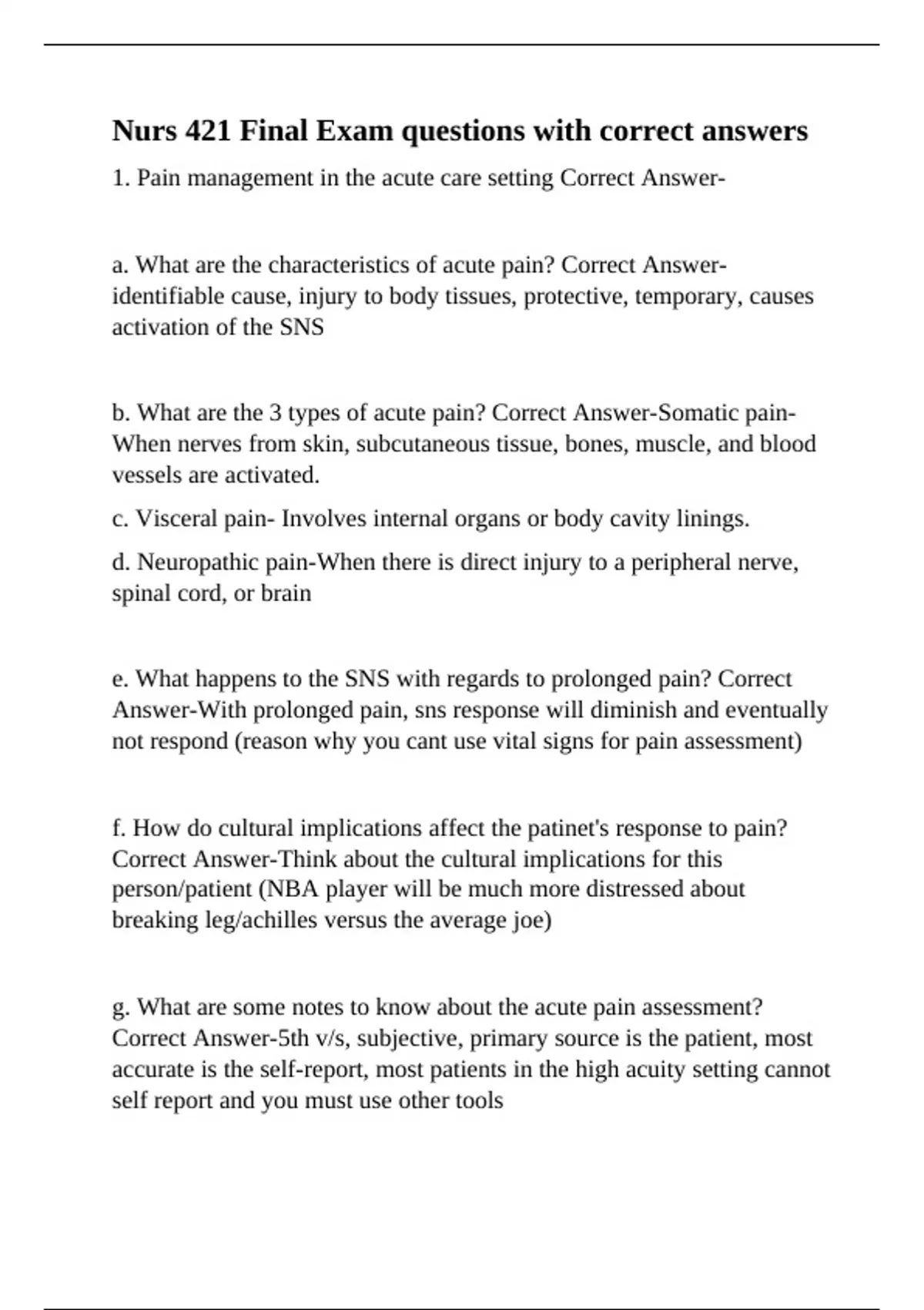 b. What are the 3 types of acute pain? Correct Answer-Somatic pain-