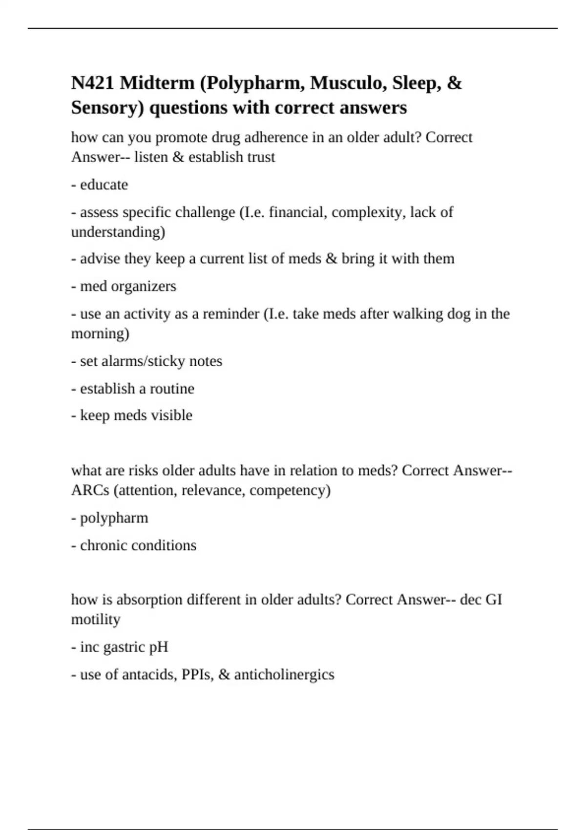 N421 Midterm (Polypharm, Musculo, Sleep, &