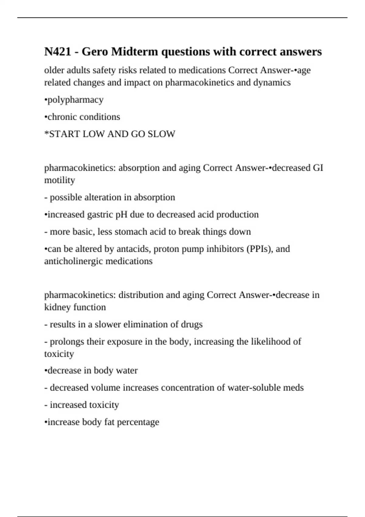 pharmacokinetics: absorption and aging Correct Answer-•decreased GI