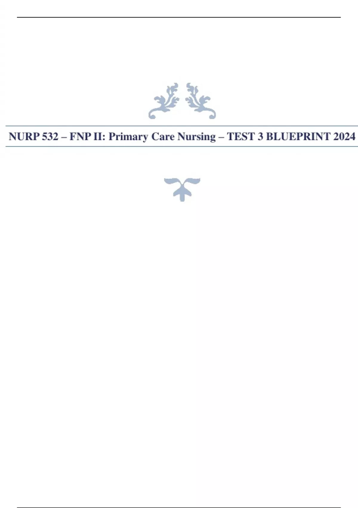 , NURP 532 – FNP II: Primary Care Nursing – TEST 3 BLUEPRINT 2024