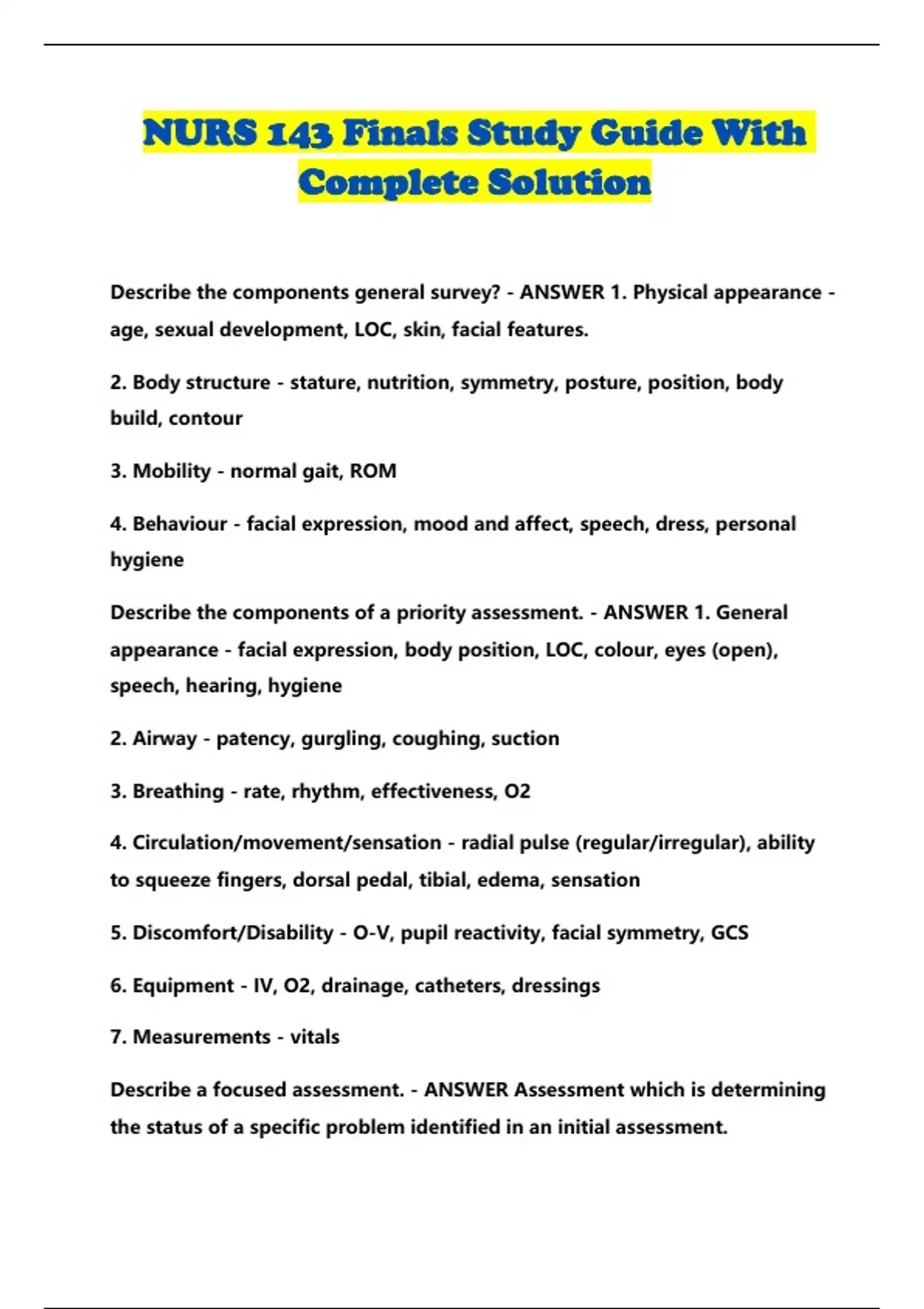 Describe a focused assessment. - ANSWER Assessment which is determining