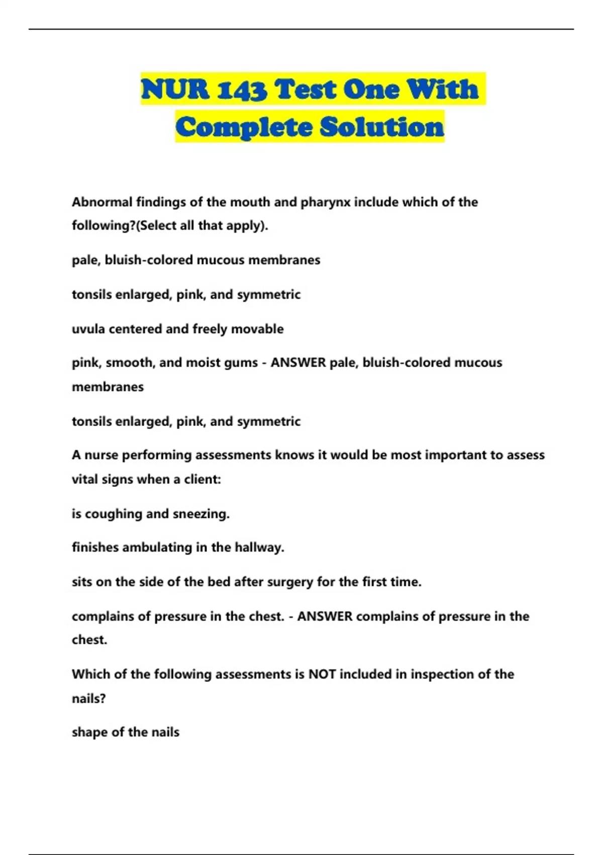 NUR 143 Test One With
