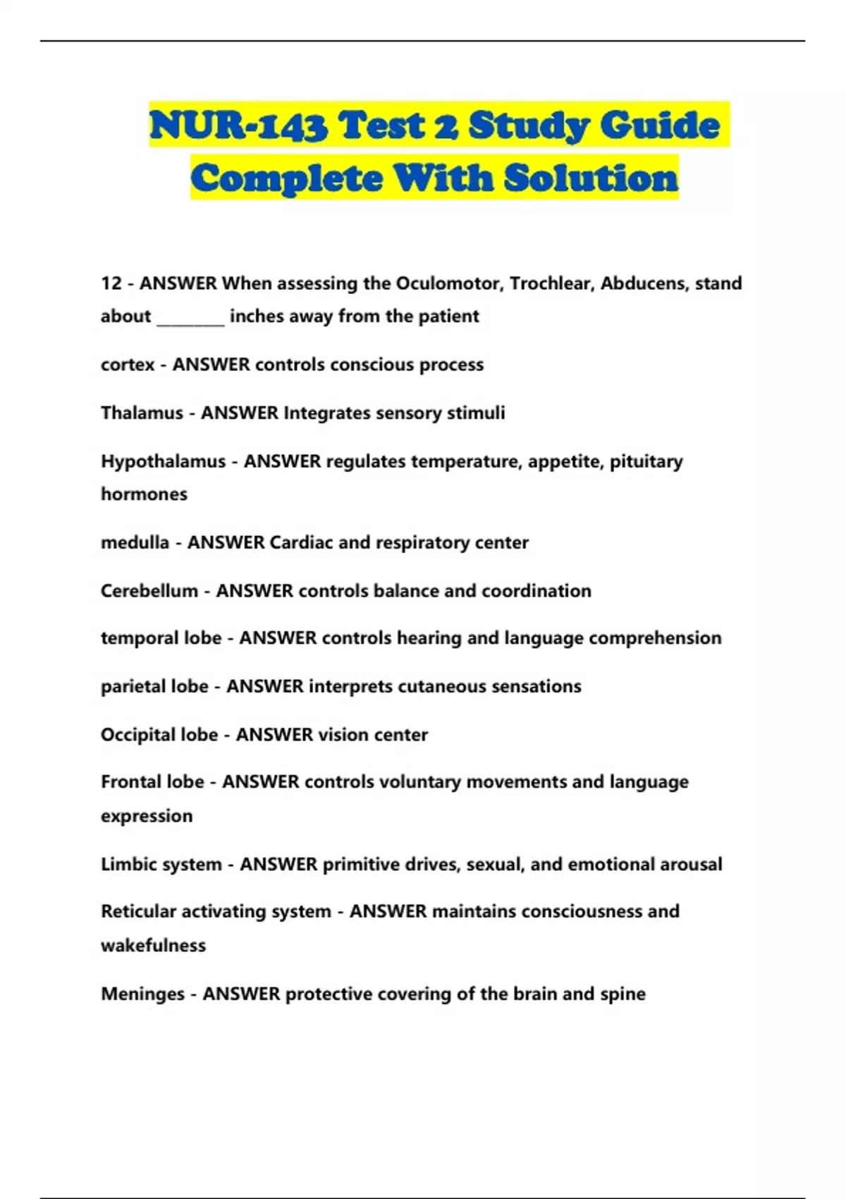 NUR-143 Test 2 Study Guide
