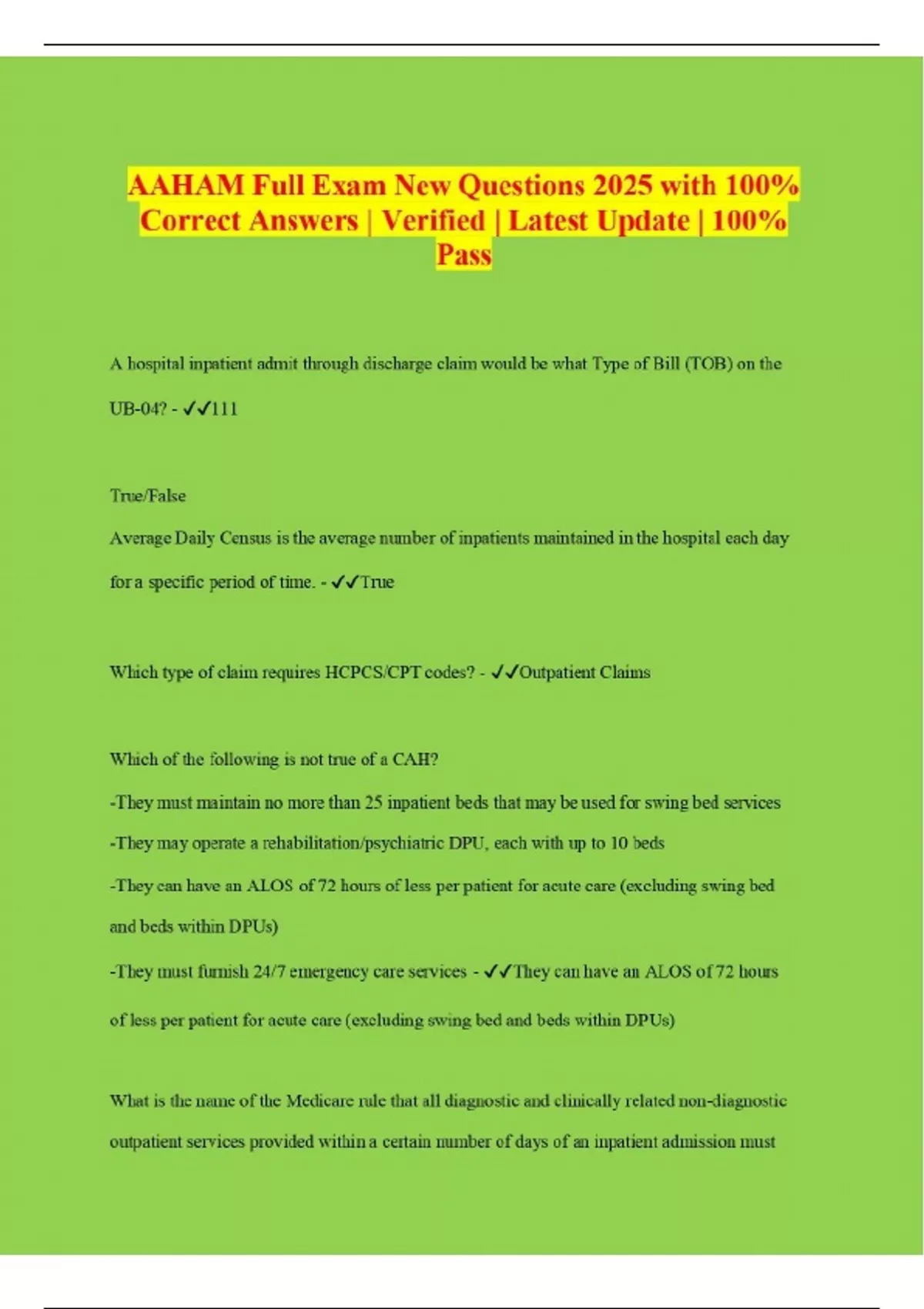 AAHAM Full Exam New Questions 2025 with 100% Correct Answers | Verified | Latest Update | 100% Pass