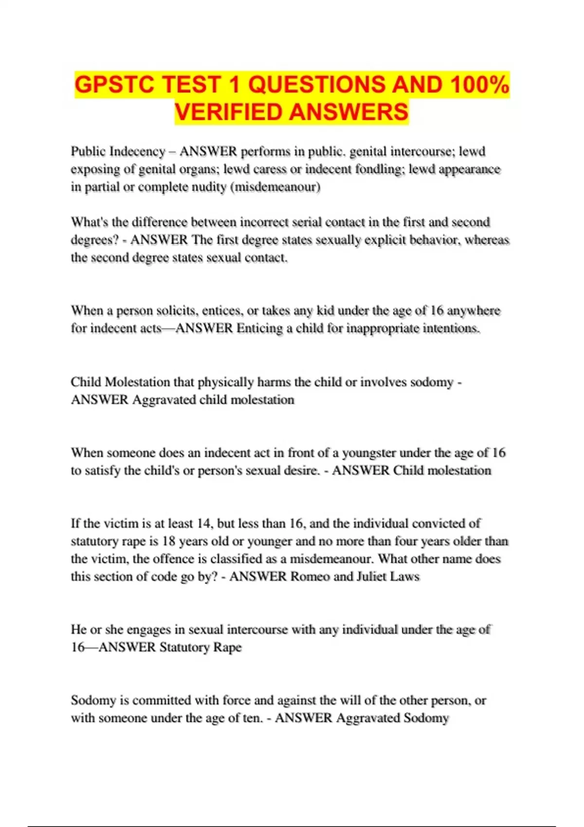 GPSTC TEST 1 QUESTIONS AND 100%