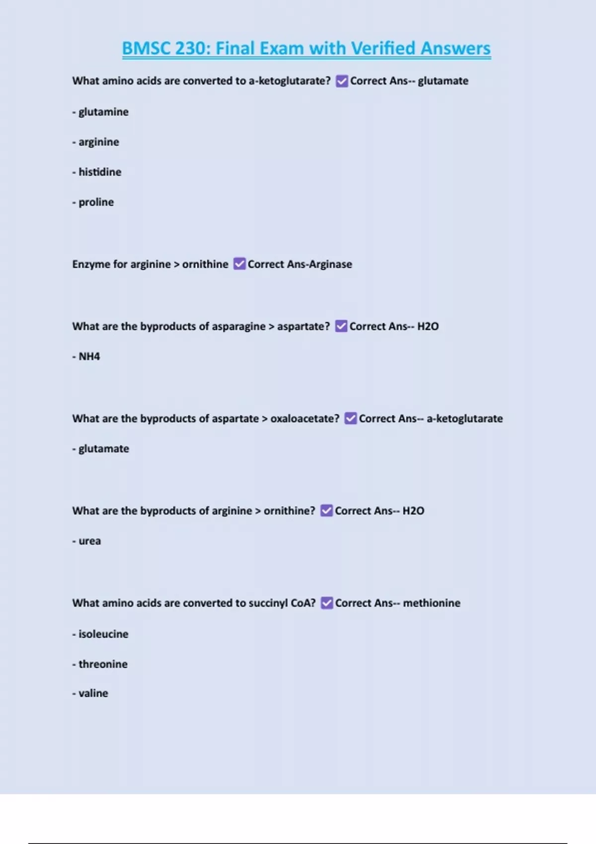 BMSC 230: Final Exam with Verified Answers