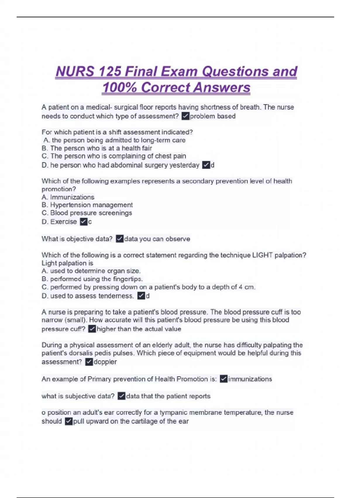 NURS 125 Final Exam Questions and 100% Correct Answers