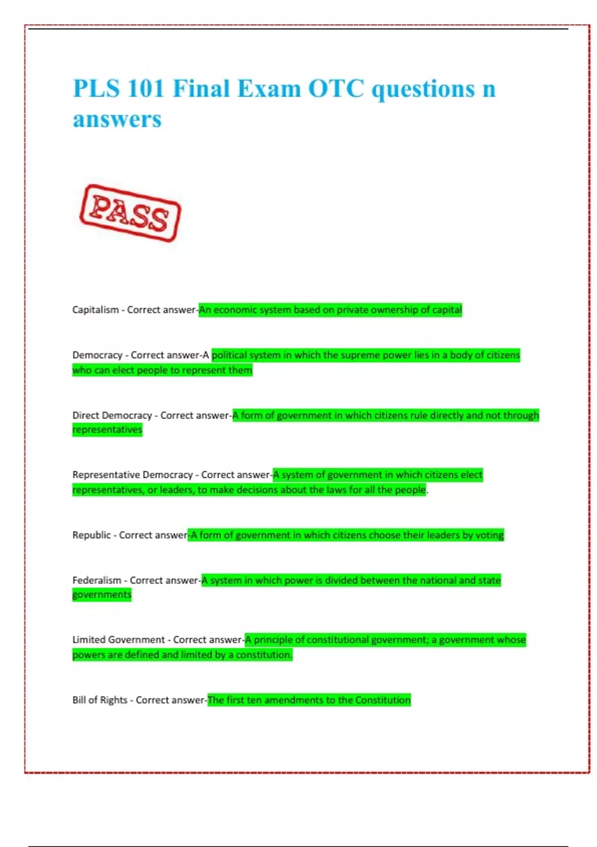 PLS 101 Final Exam OTC questions n answers 2025