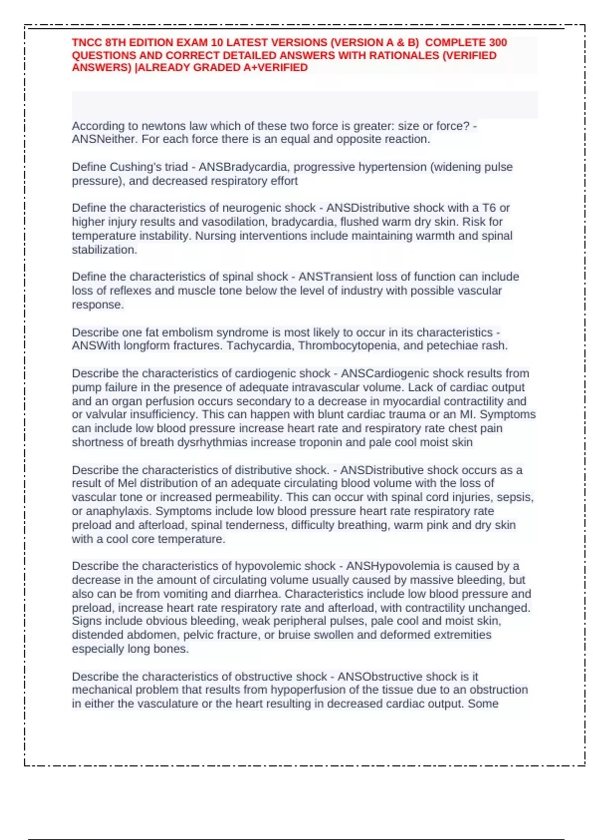 , TNCC 8TH EDITION EXAM 10 LATEST VERSIONS (VERSION A & B) COMPLETE 300