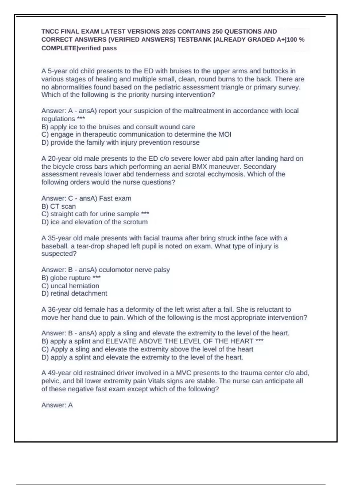 , TNCC FINAL EXAM LATEST VERSIONS 2025 CONTAINS 250 QUESTIONS AND