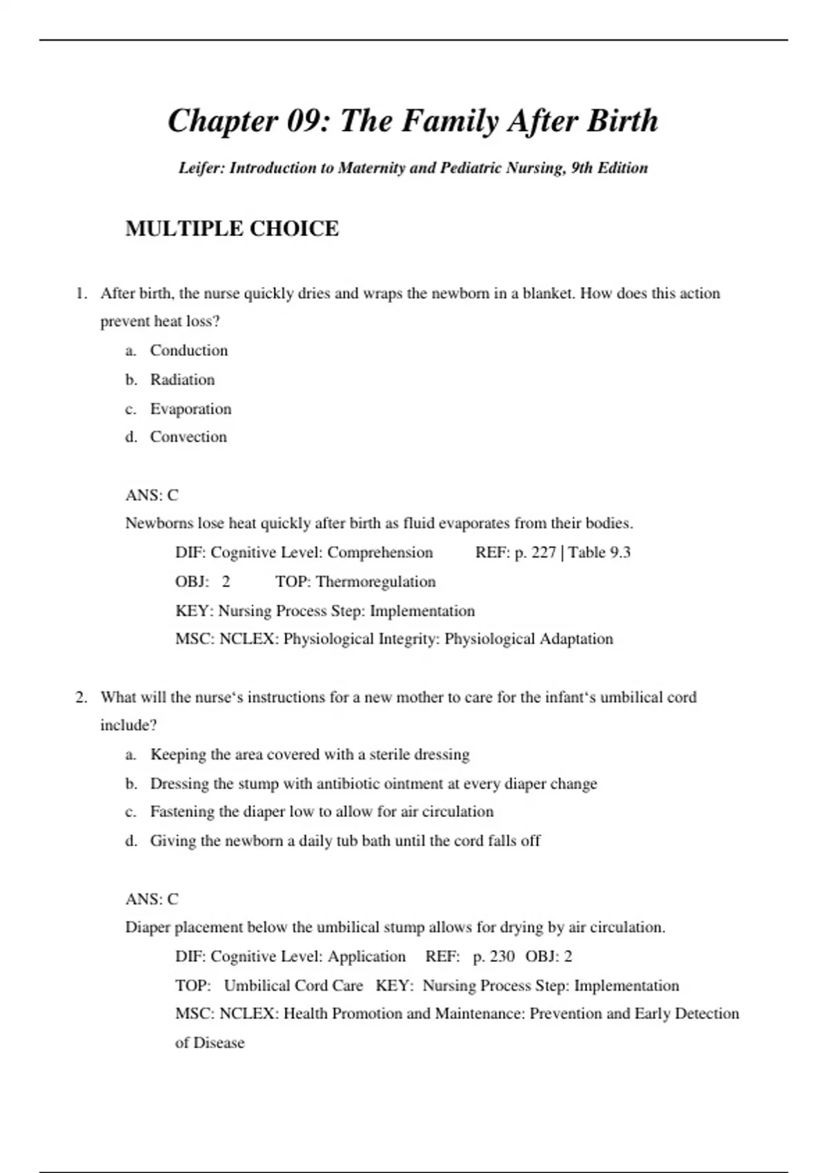 1. After birth, the nurse quickly dries and wraps the newborn in a blanket. How does this action