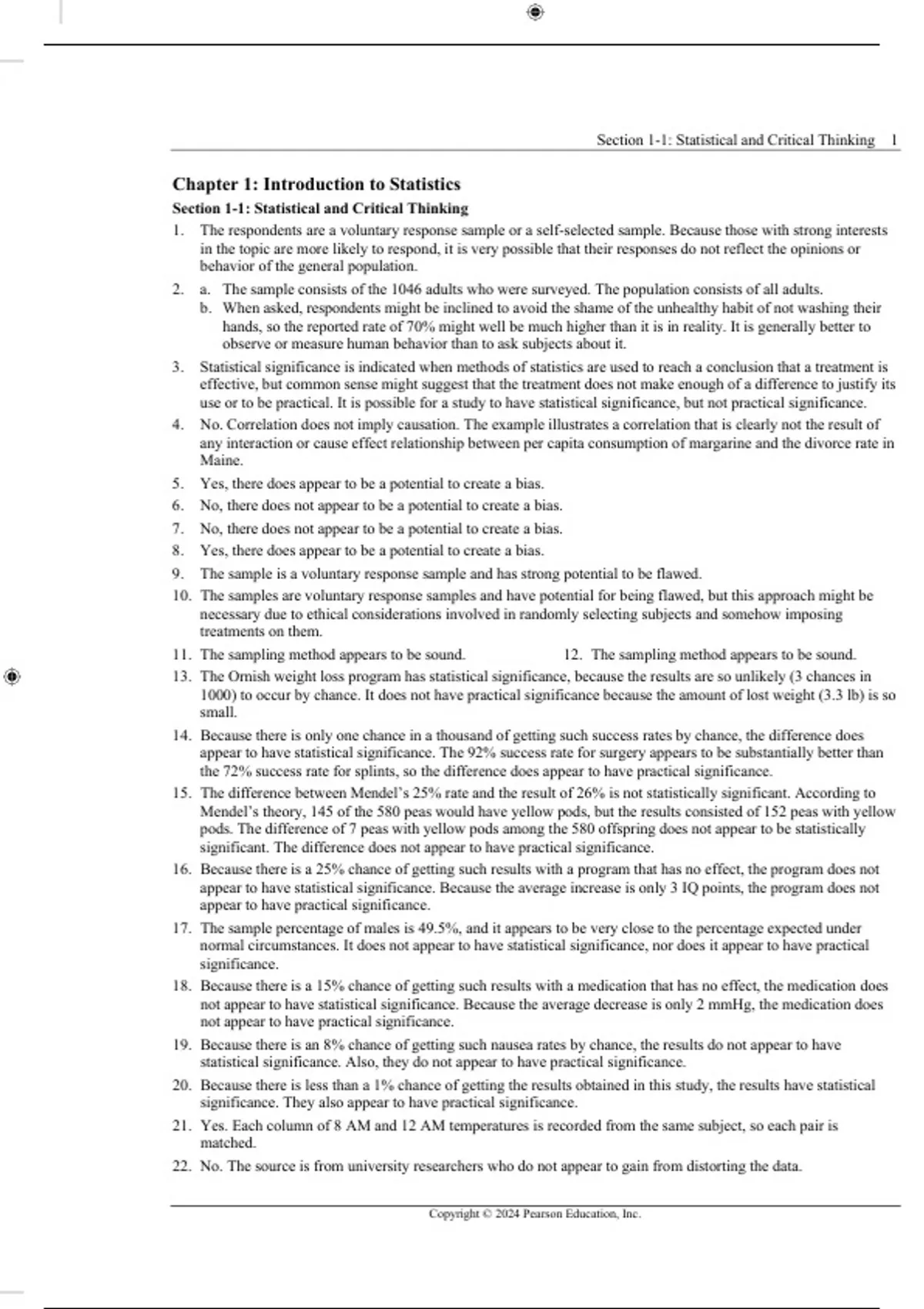 20. Because there is less than a 1% chance of getting the results obtained in this study, the results have statistical
