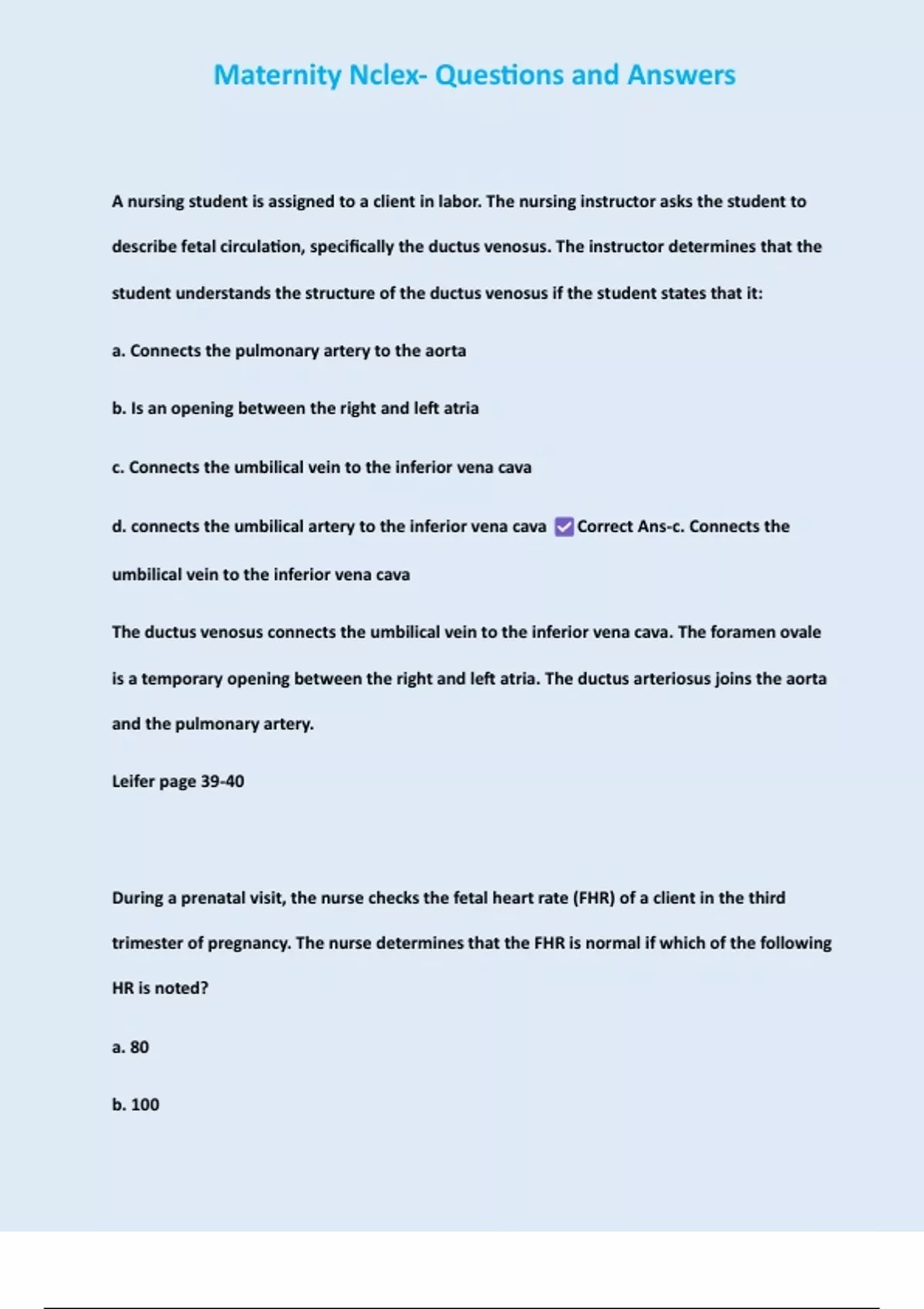 Maternity Nclex- Questions and Answers