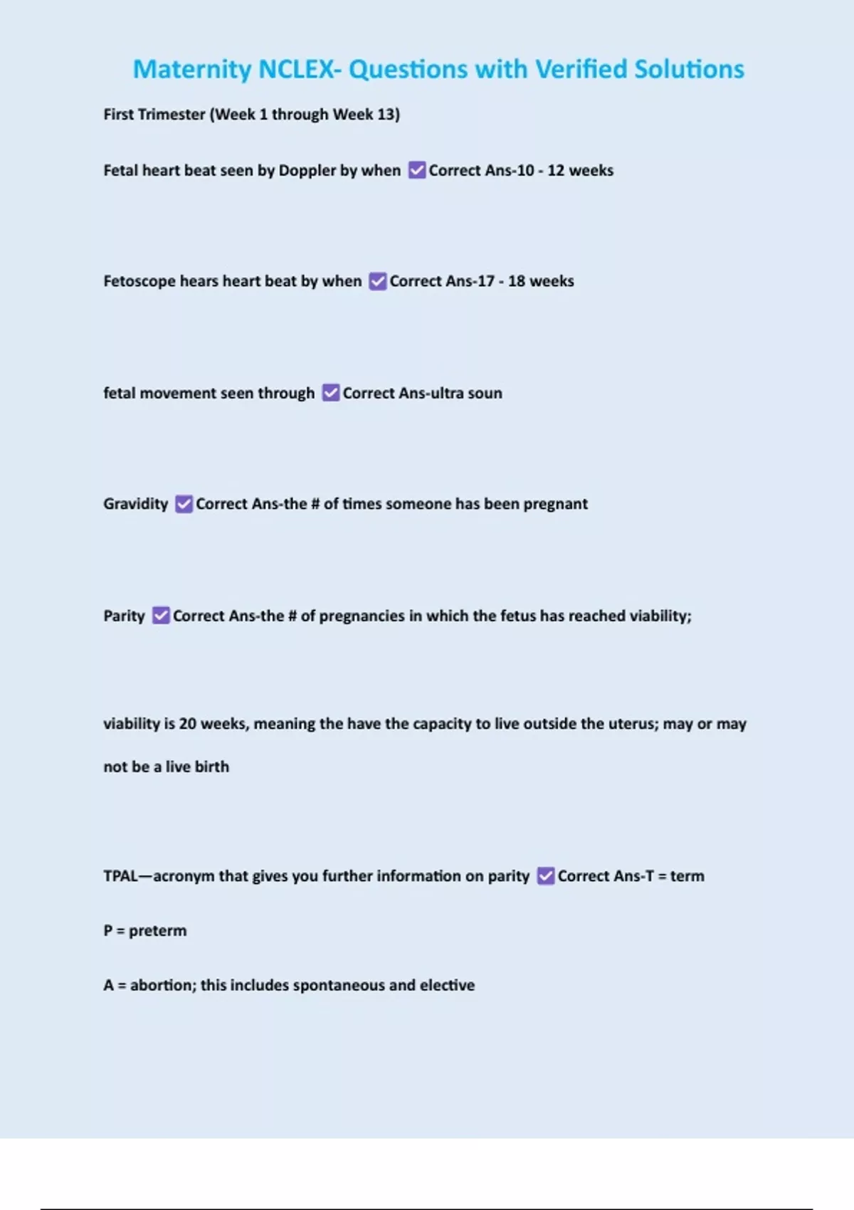 Maternity NCLEX- Questions with Verified Solutions