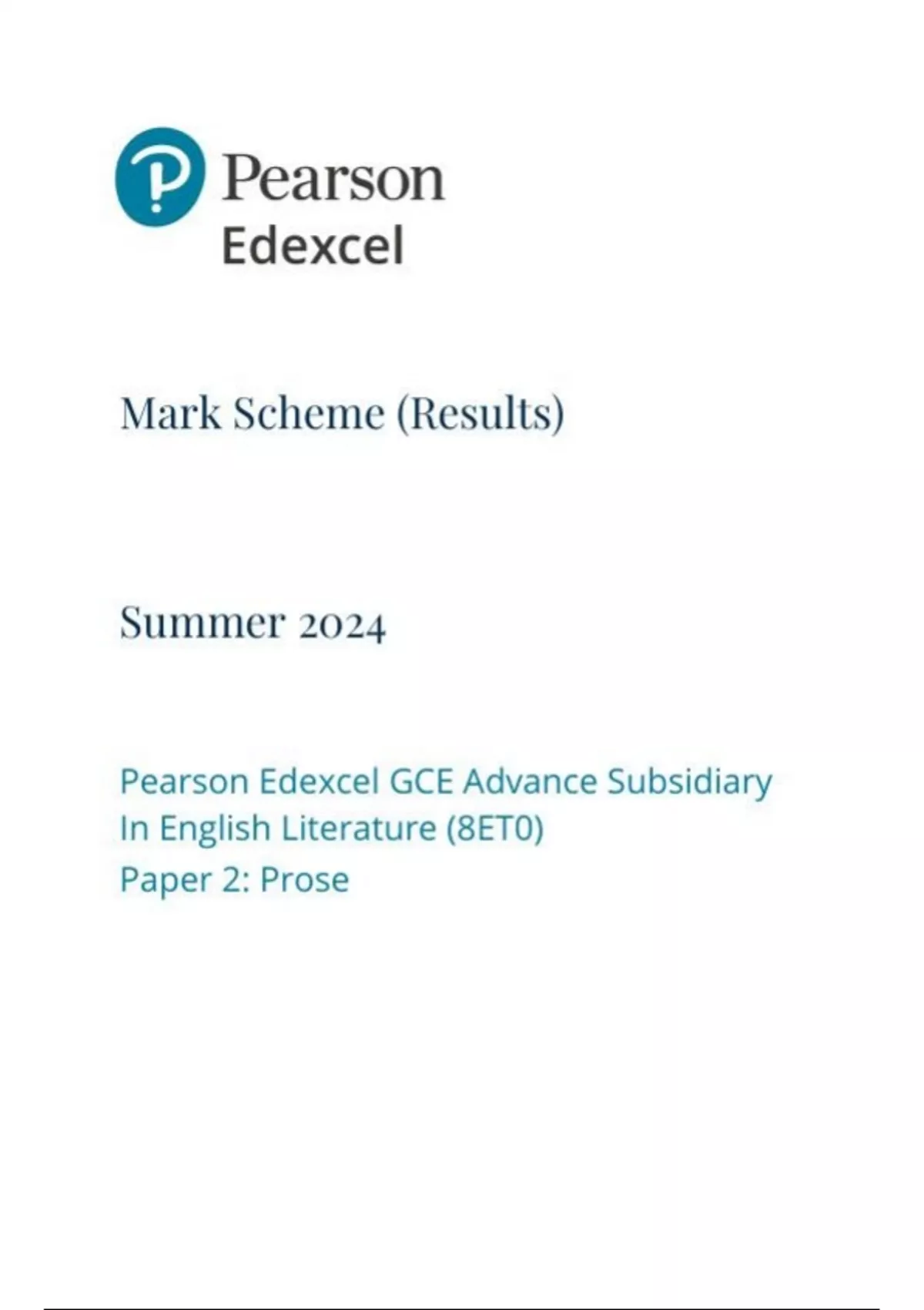 Pearson Edexcel Level 3 GCE 8ET0/02 English Literature Advanced Subsidiary PAPER 2 Question paper and mark scheme Prose June 2024