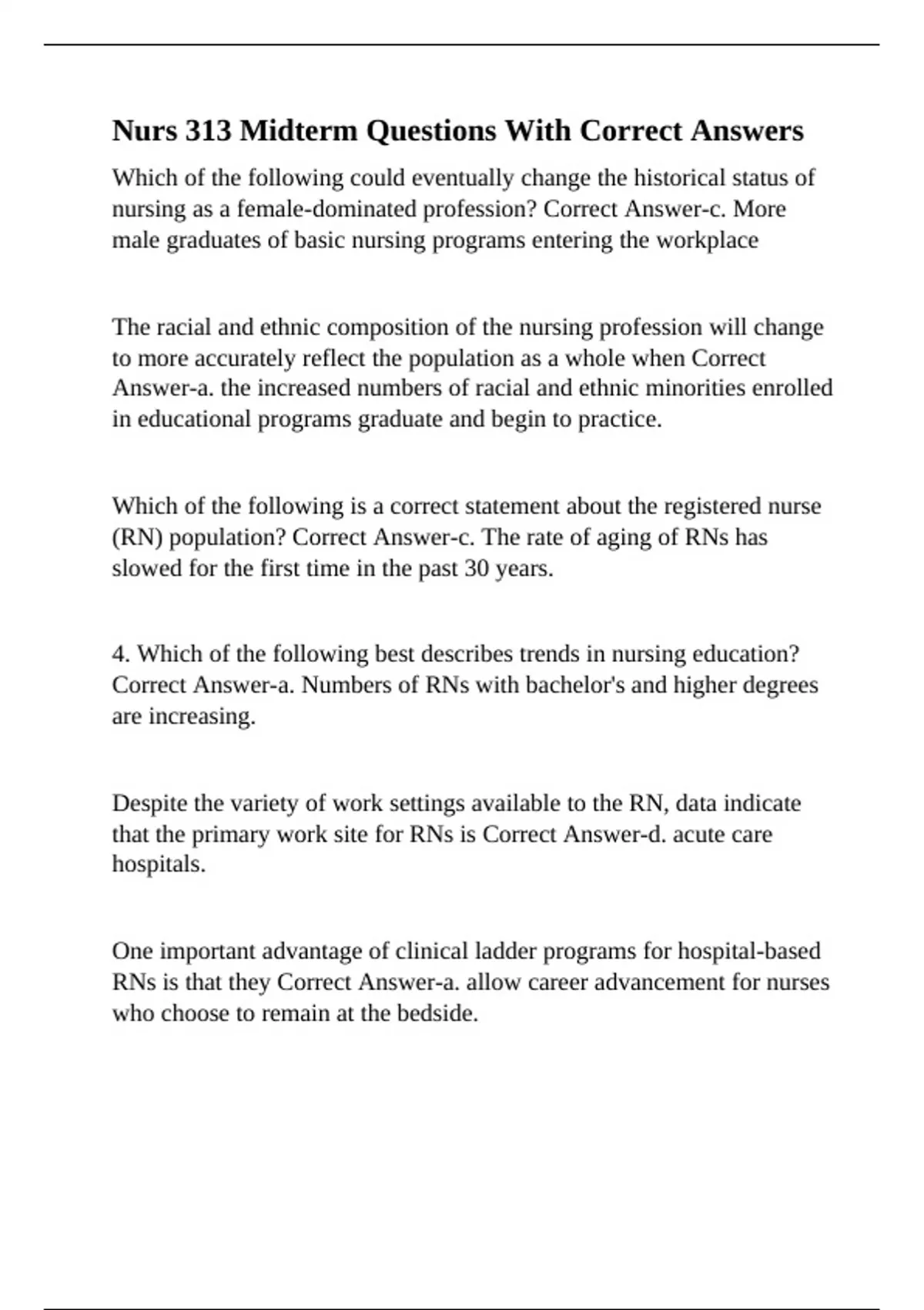 RNs is that they Correct Answer-a. allow career advancement for nurses