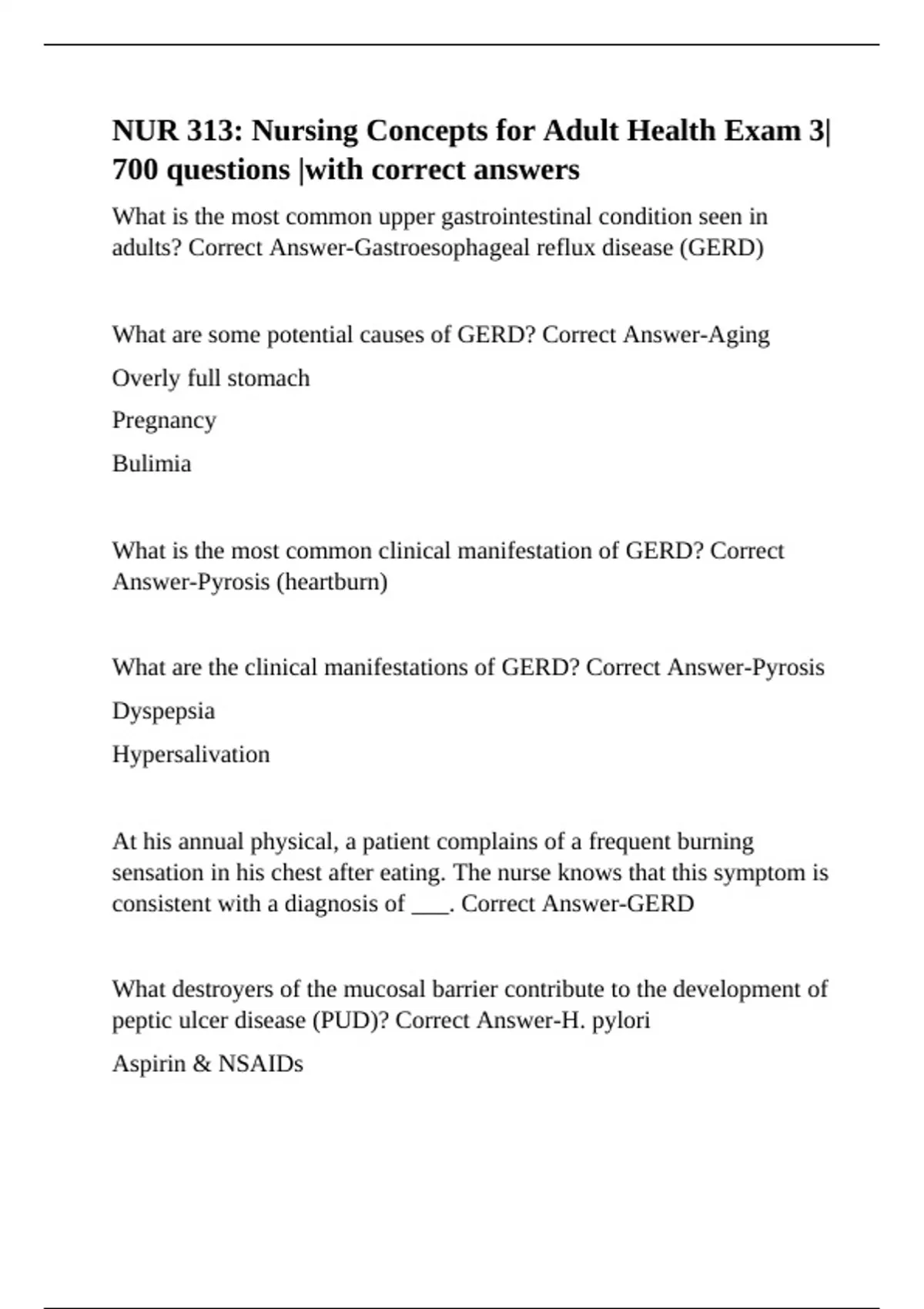 adults? Correct Answer-Gastroesophageal reflux disease (GERD)