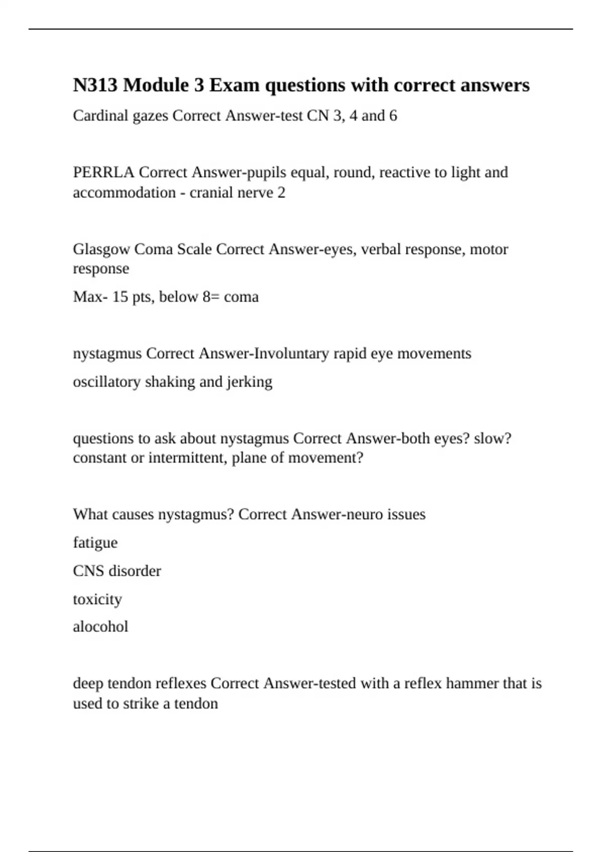 nystagmus Correct Answer-Involuntary rapid eye movements