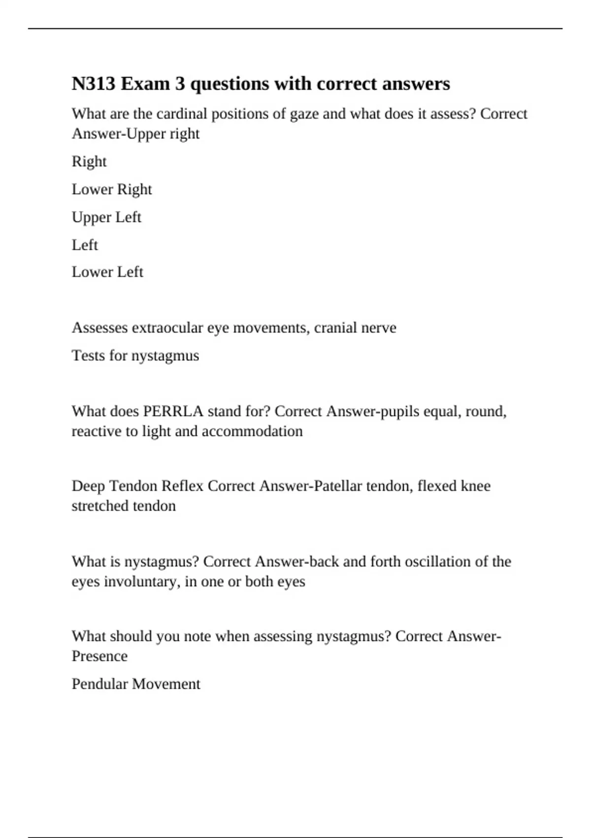 Deep Tendon Reflex Correct Answer-Patellar tendon, flexed knee