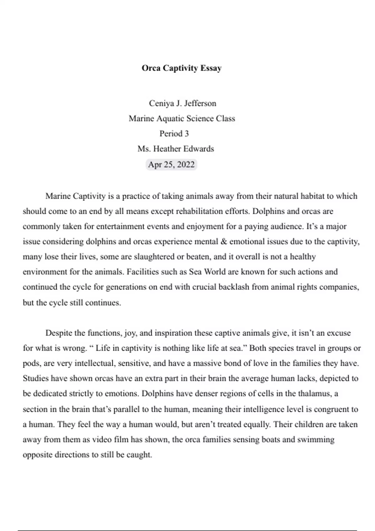 for what is wrong. “ Life in captivity is nothing like life at sea.” Both species travel in groups or