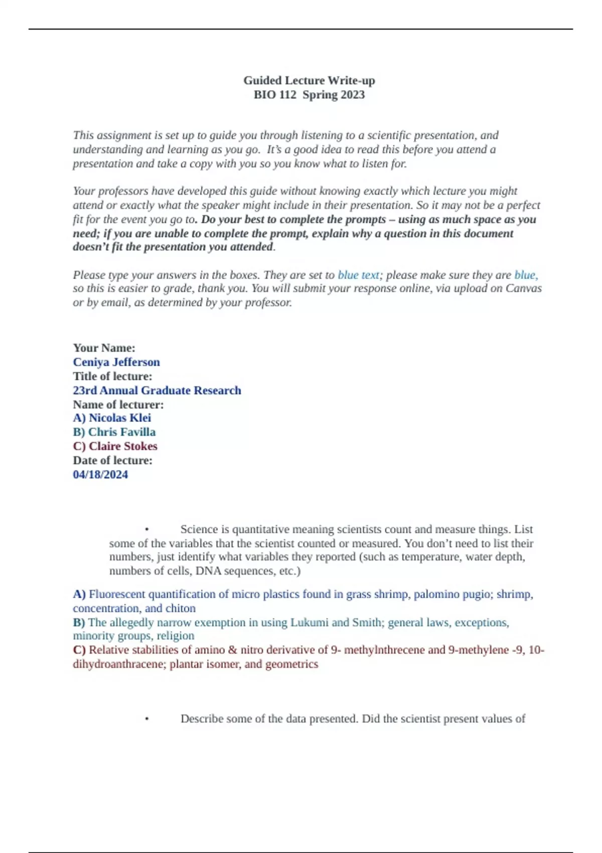 need; if you are unable to complete the prompt, explain why a question in this document