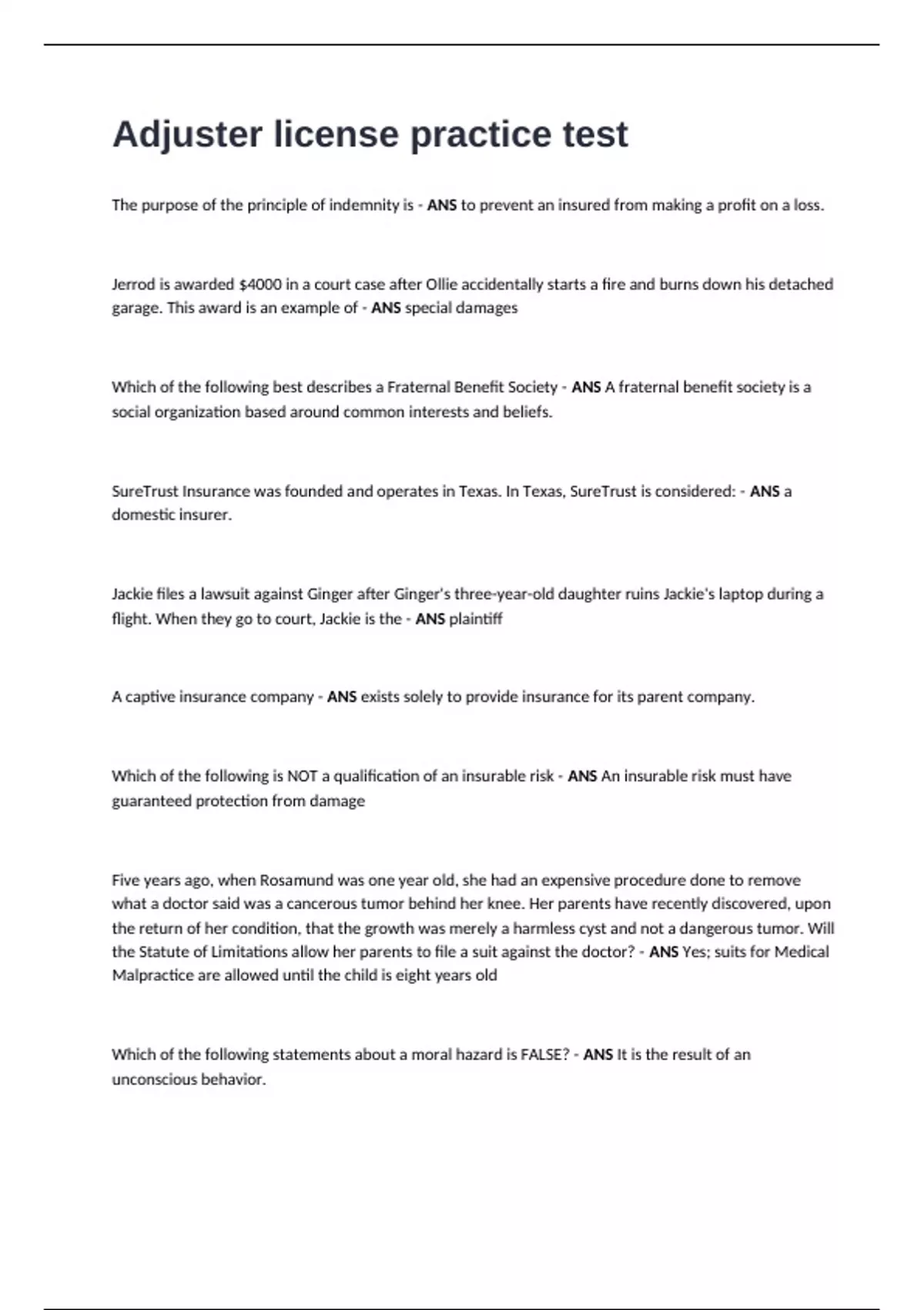 The purpose of the principle of indemnity is - ANS to prevent an insured from making a profit on a loss.