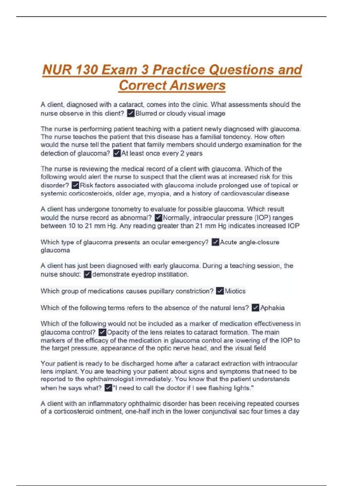 nur 130 exam 3 practice questions and correct answ