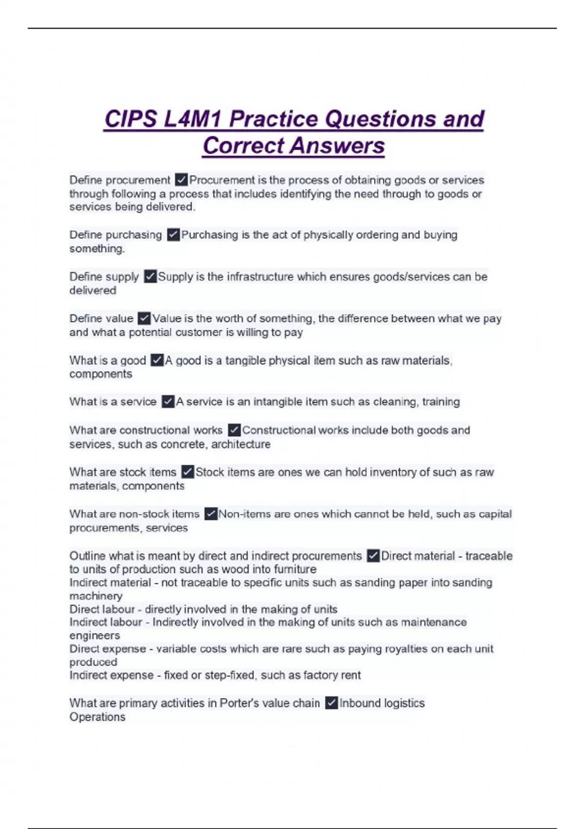CIPS L4M1 Practice Questions and Correct Answers