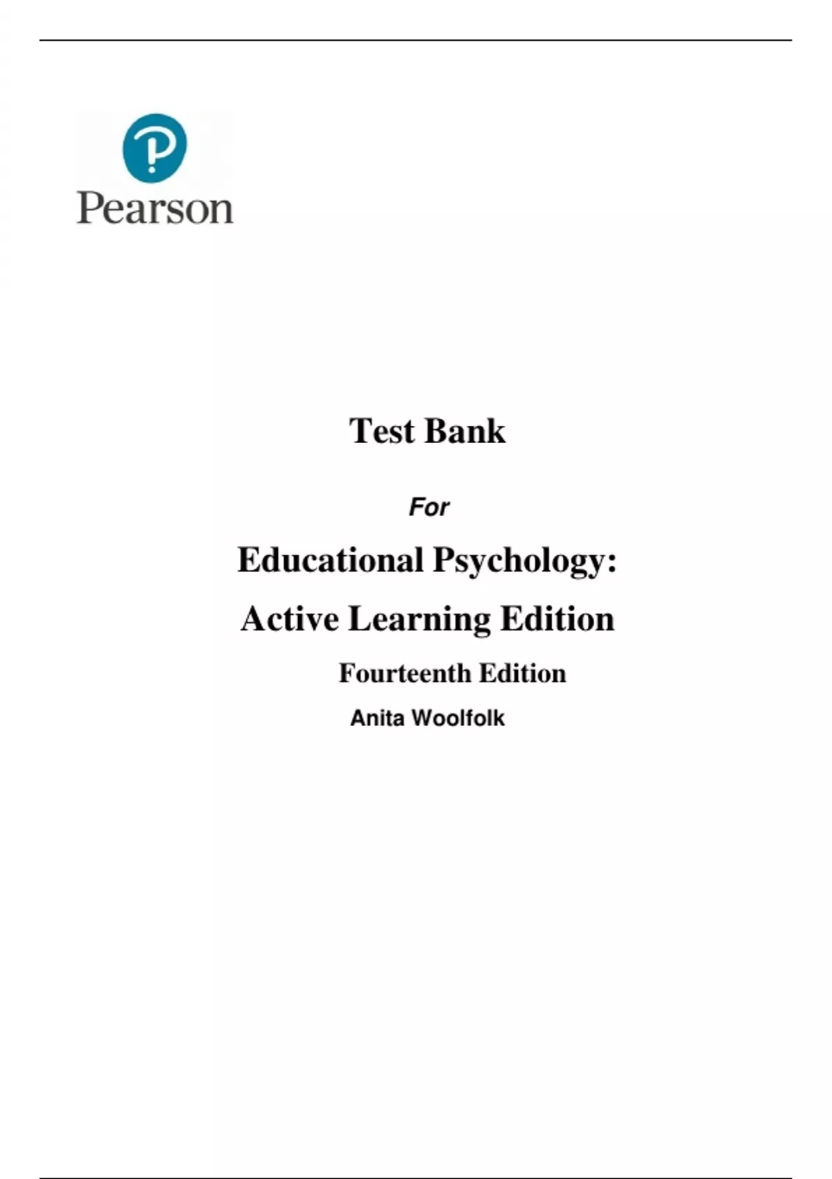 Test Bank For Educational Psychology Active Learning Edition 14th Edition By Anita Woolfolk (All Chapters, 100% Original Verified, A+ Grade) Test Bank For Educational Psychology Active Learning Edition 14e By Anita Woolfolk (All Chapters, 100% Original Verified, A+ Grade)