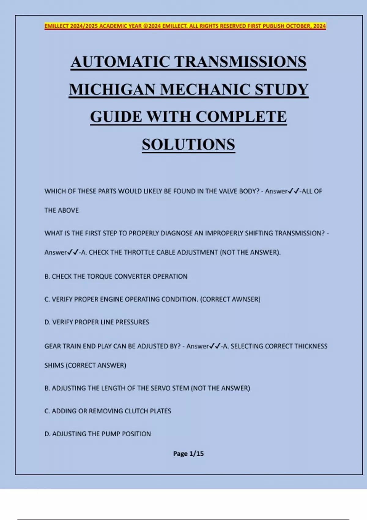 , EMILLECT 2024/2025 ACADEMIC YEAR ©2024 EMILLECT. ALL RIGHTS RESERVED FIRST PUBLISH OCTOBER, 2024
