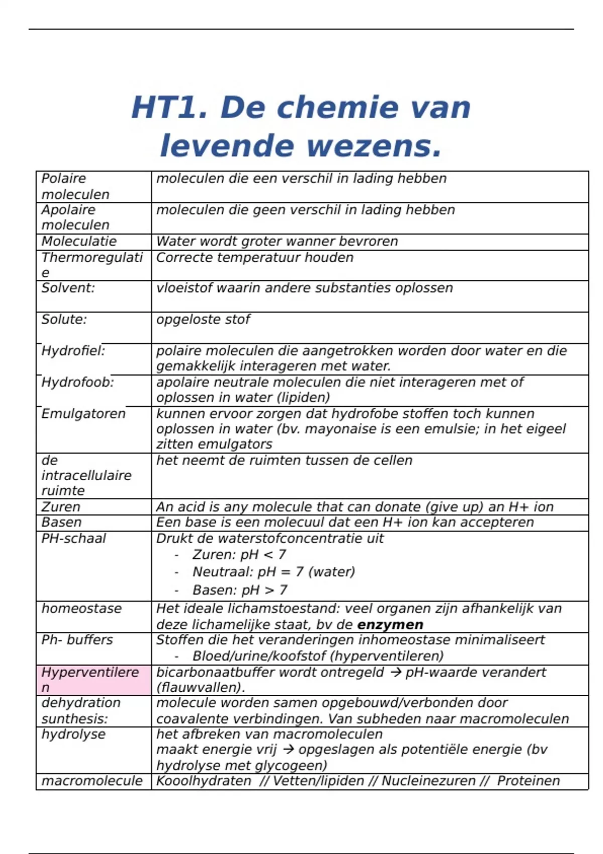 HT1. De chemie van levende