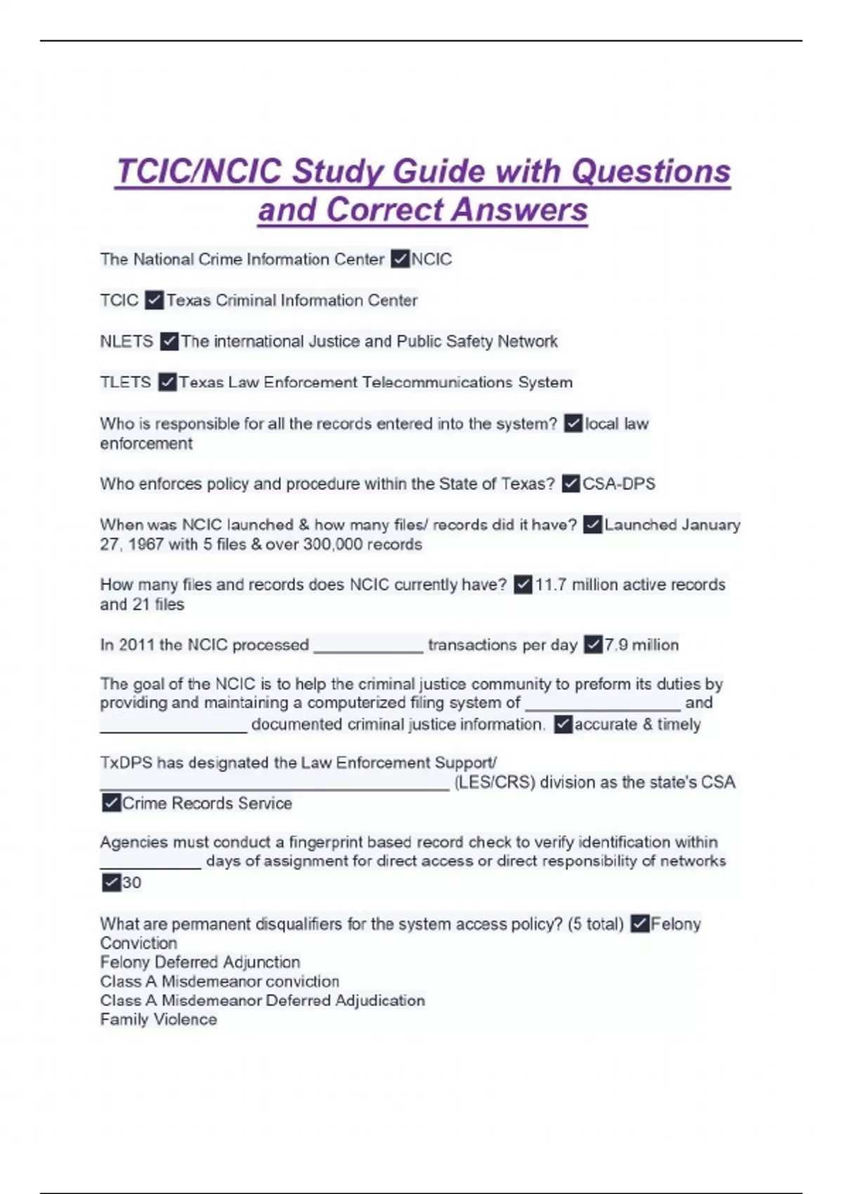 TCIC/NCIC Study Guide with Questions and Correct Answers