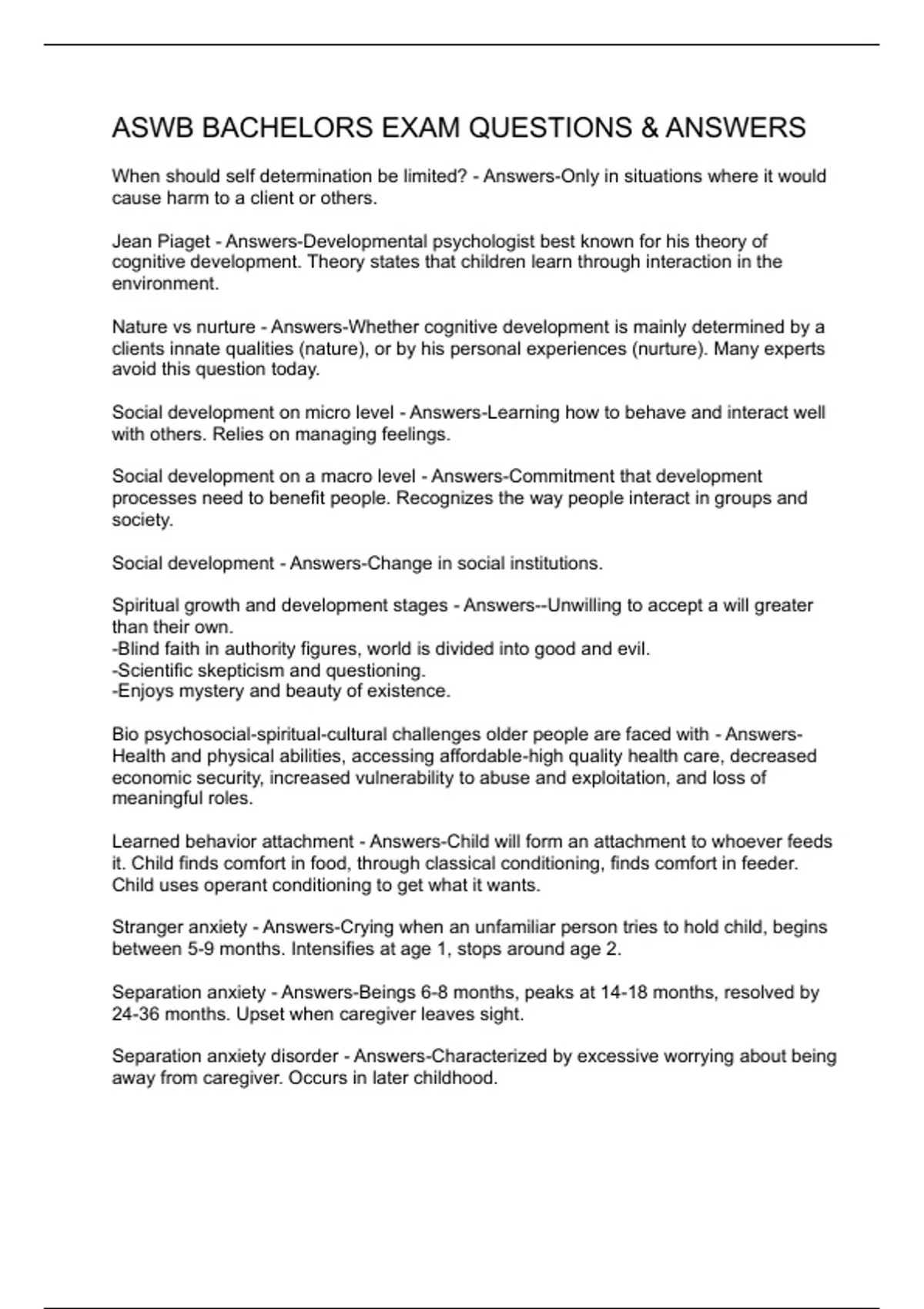 ASWB BACHELORS EXAM QUESTIONS & ANSWERS