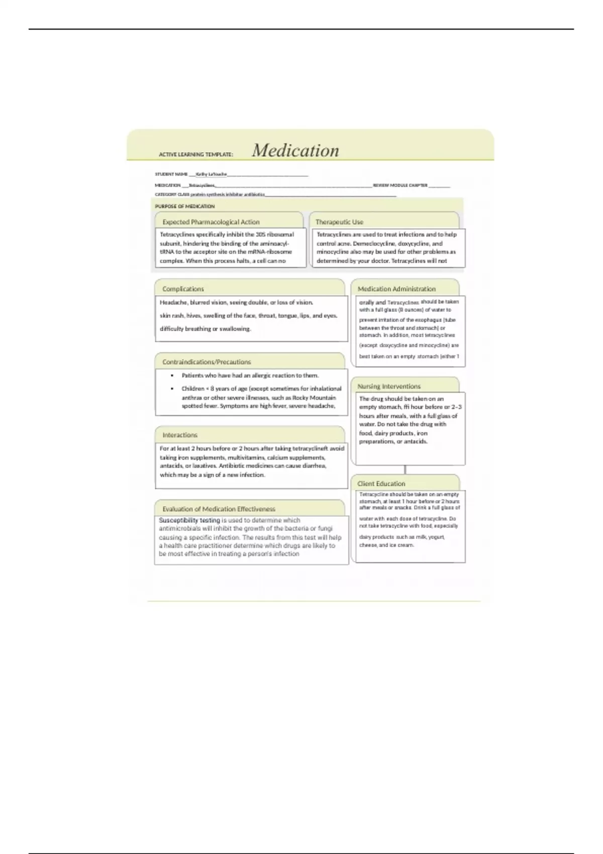 MEDICATION ___Tetracyclines__________________________________________________________________ REVIEW MODULE CHAPTER _________