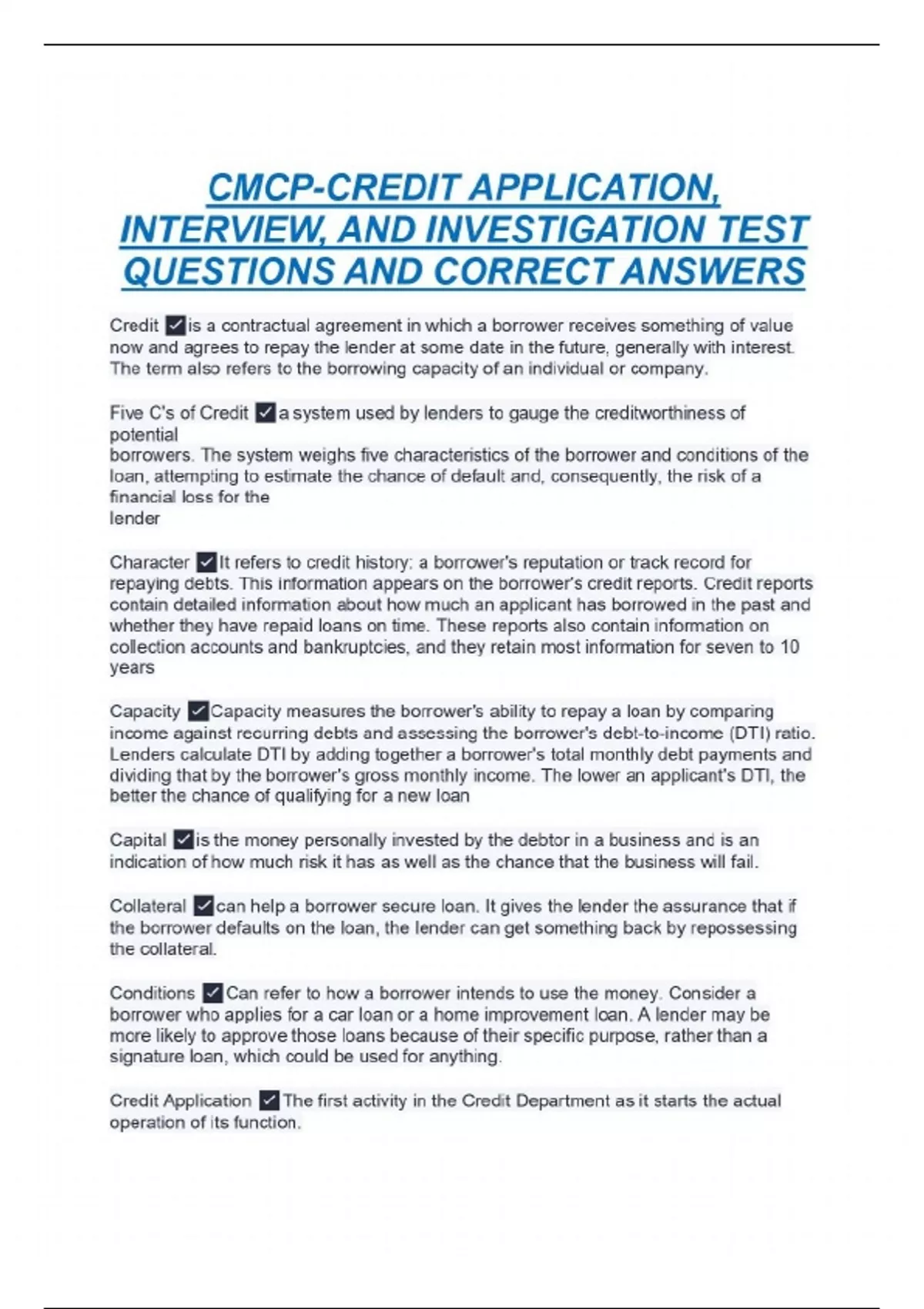 CMCP-CREDIT APPLICATION, INTERVIEW, AND INVESTIGATION TEST QUESTIONS AND CORRECT ANSWERS