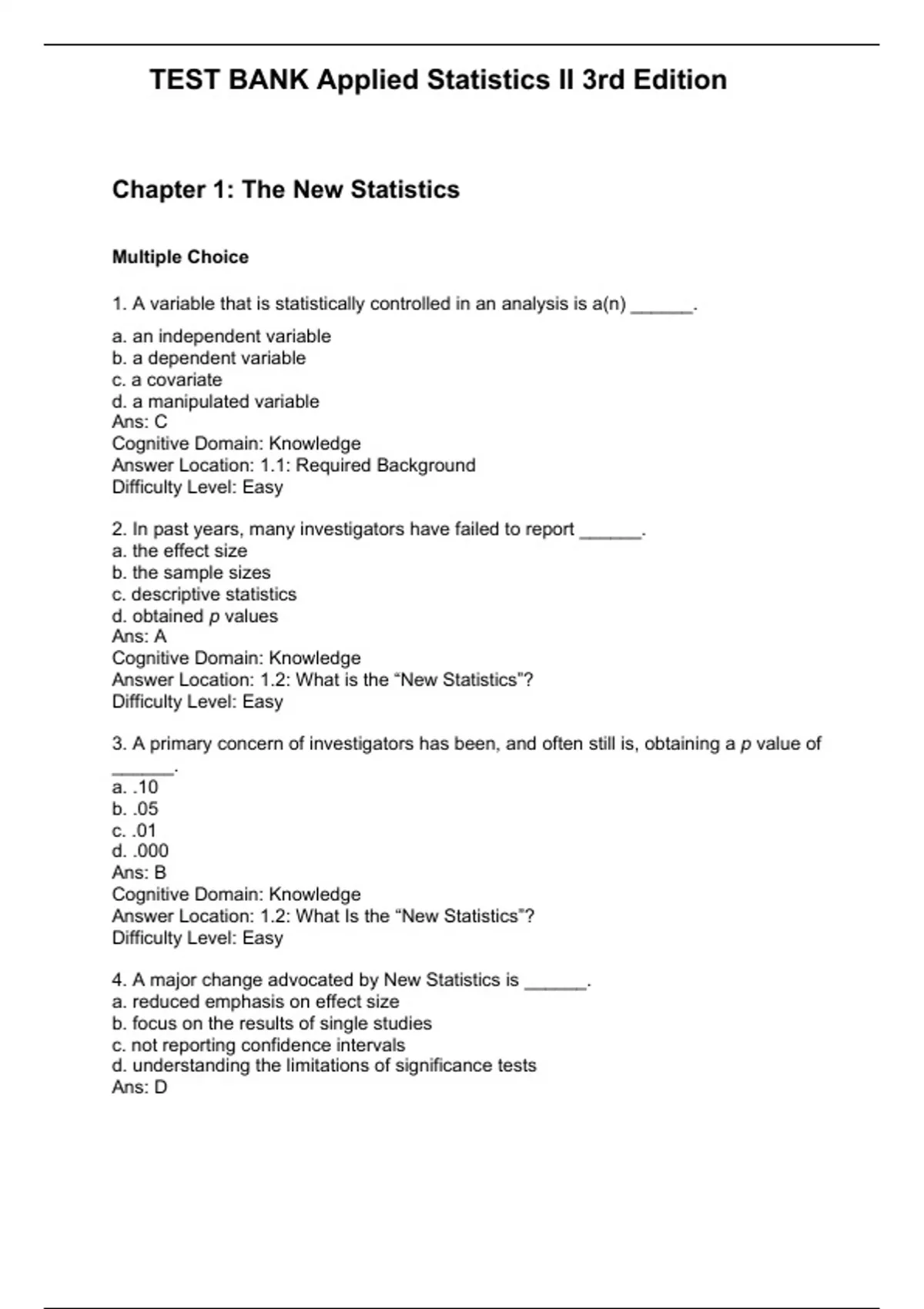 TEST BANK Applied Statistics II 3rd Edition