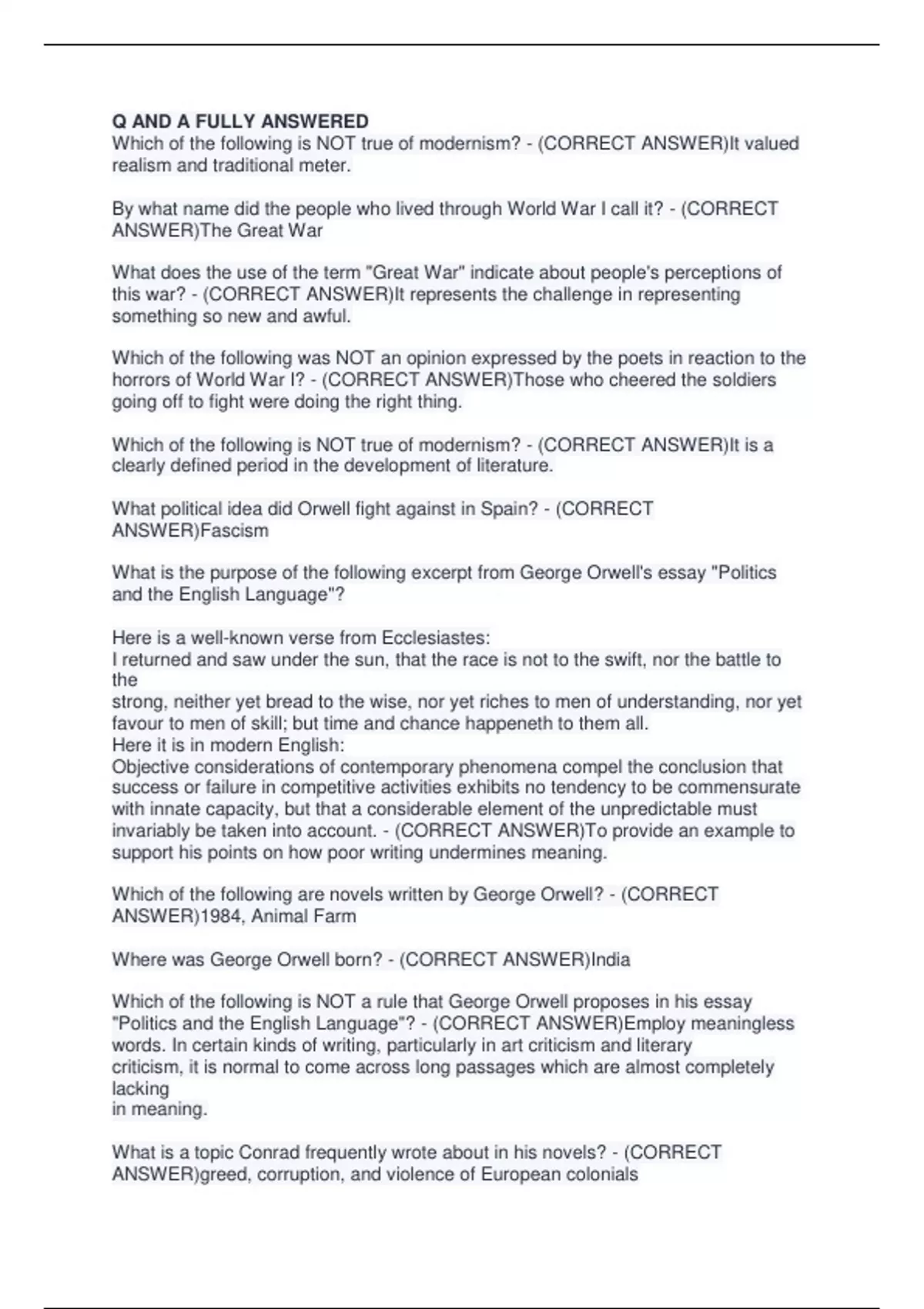 "Politics and the English Language"? - (CORRECT ANSWER)Employ meaningless