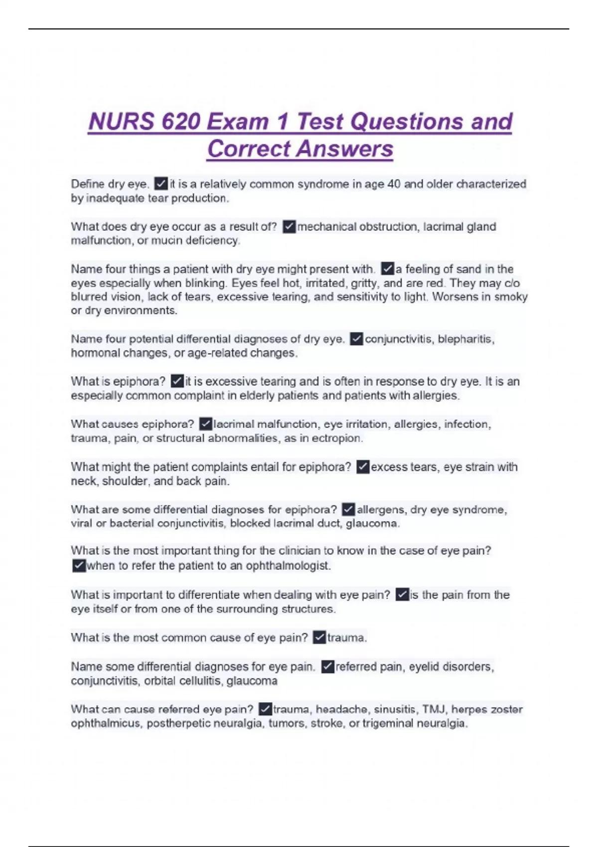 NURS 620 Exam 1 Test Questions and Correct Answers