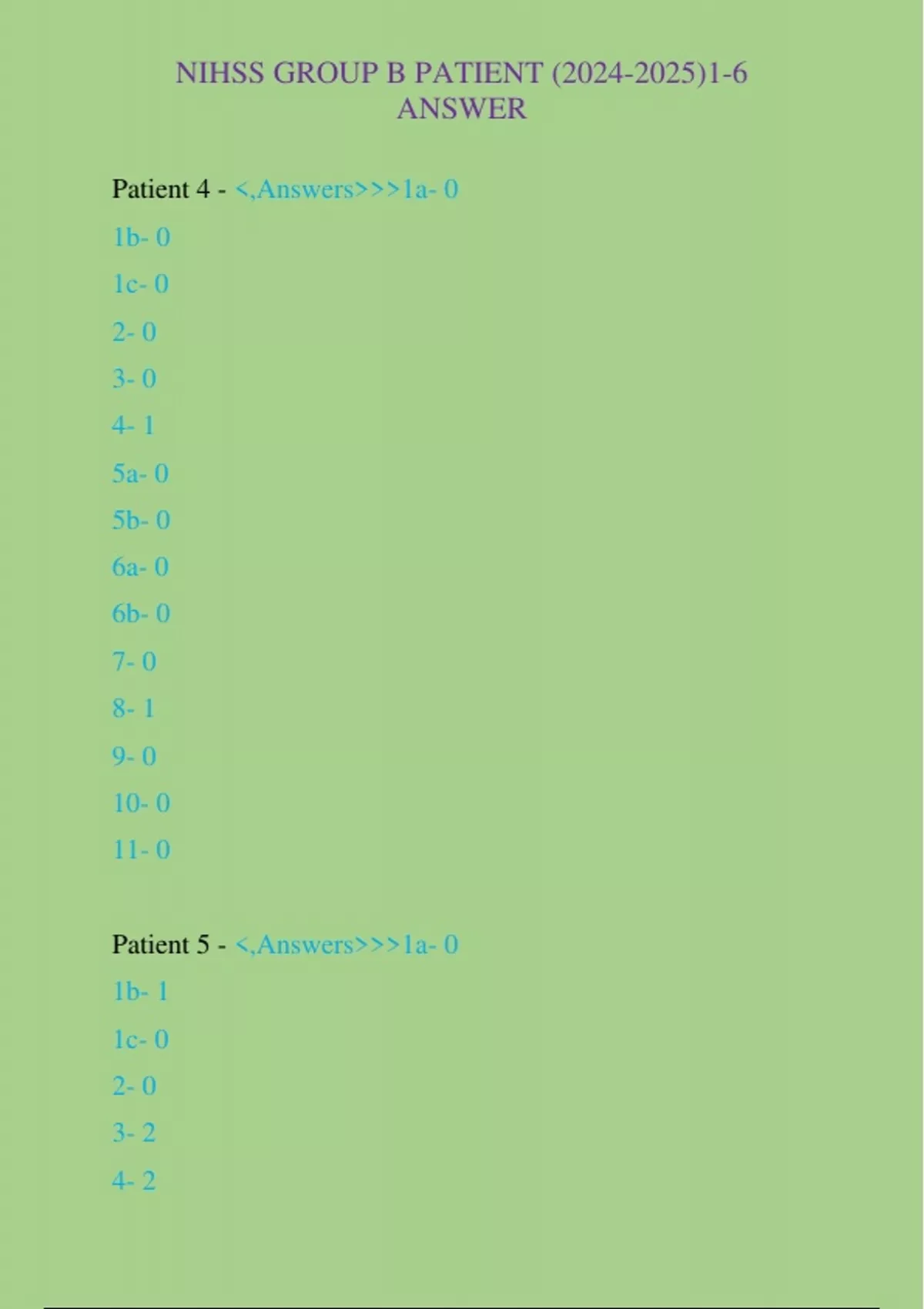 Patient 6 - <,Answers>>>1a- 0