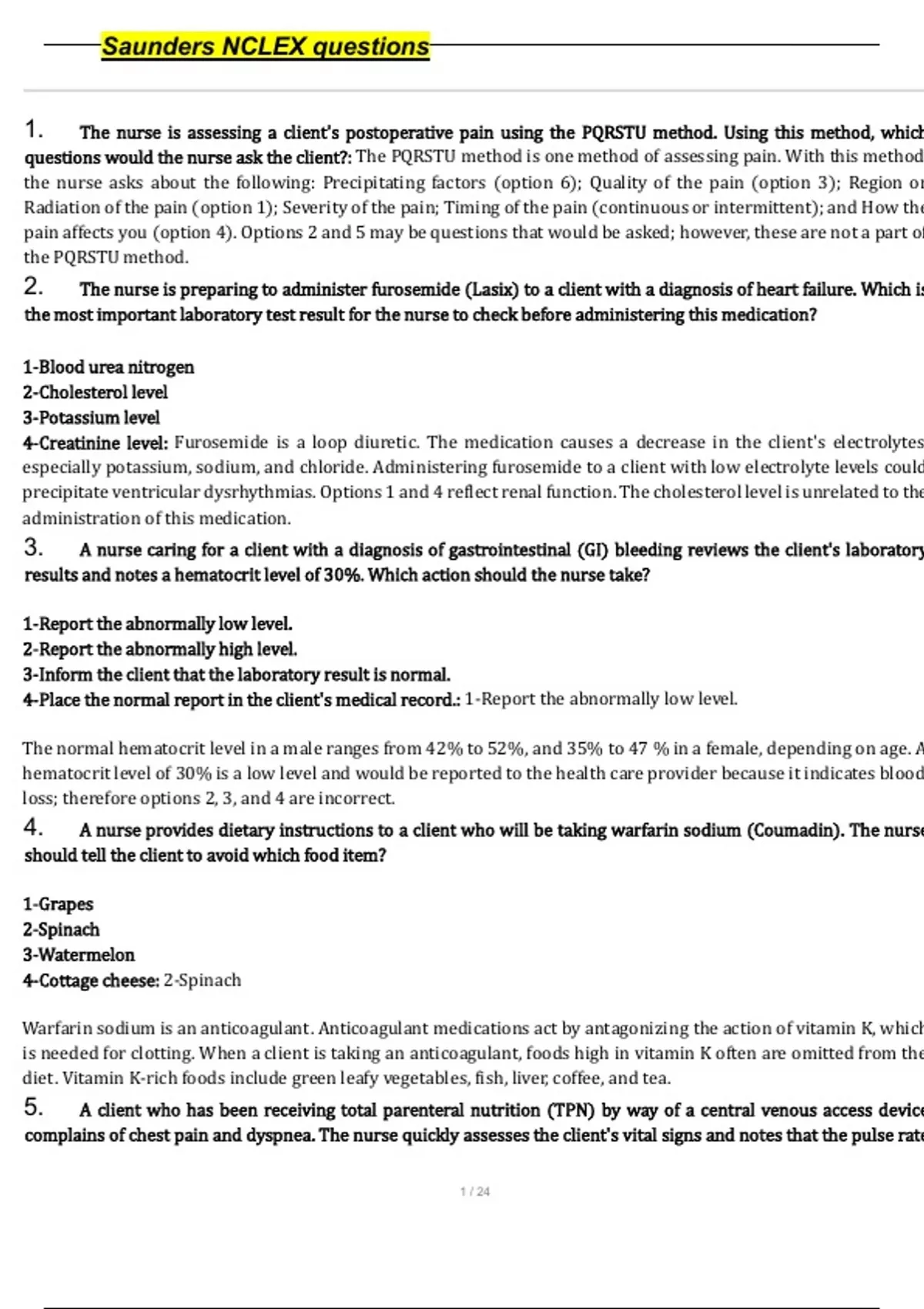 , Saunders NCLEX questions