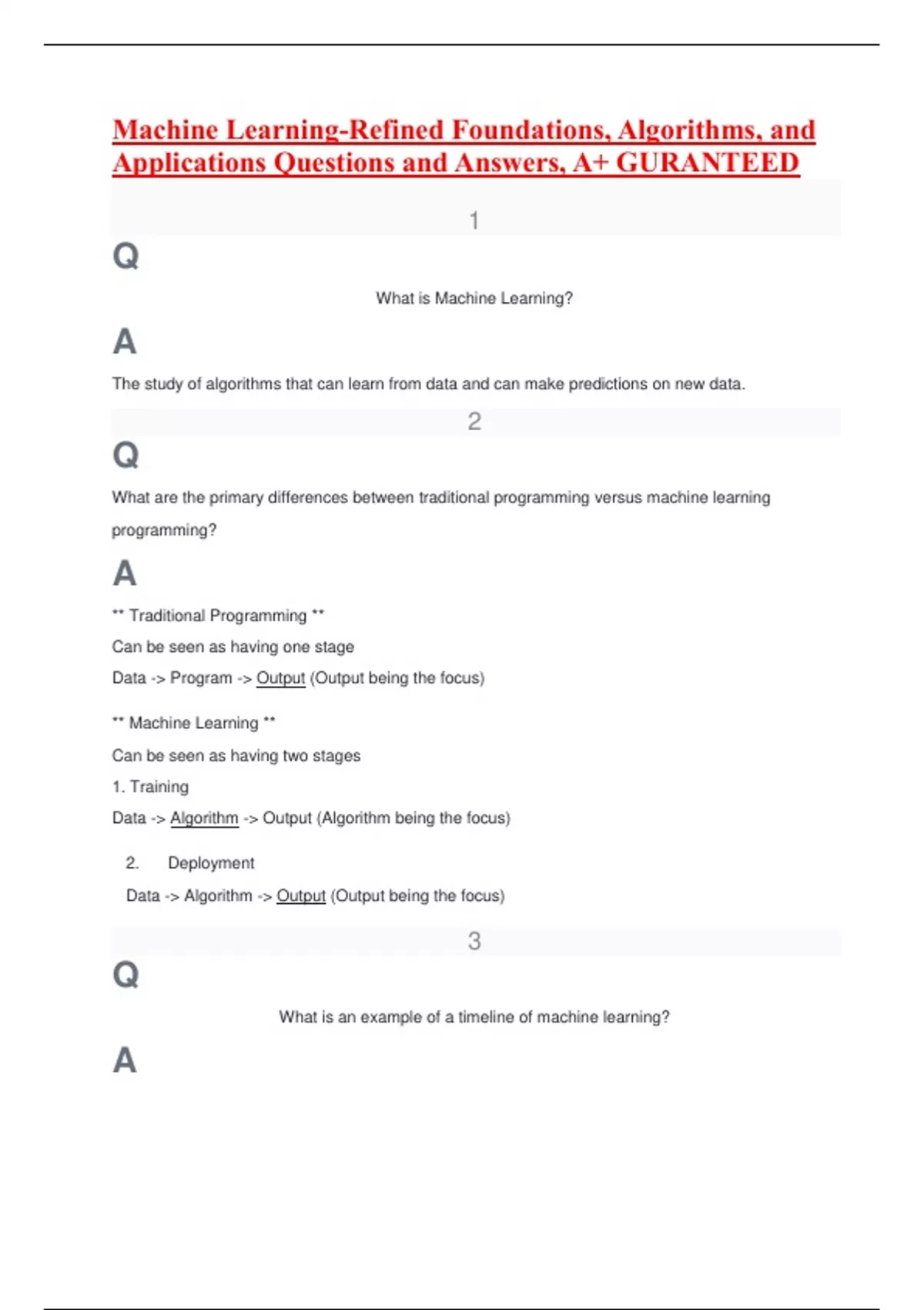 Machine Learning-Refined Foundations, Algorithms, and Applications Questions and Answers, A+ GURANTEED