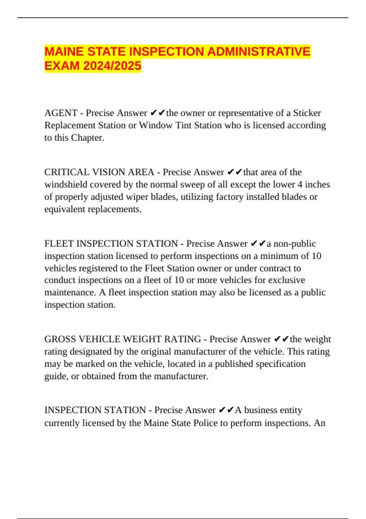 MAINE STATE INSPECTION ADMINISTRATIVE EXAM 2024/2025