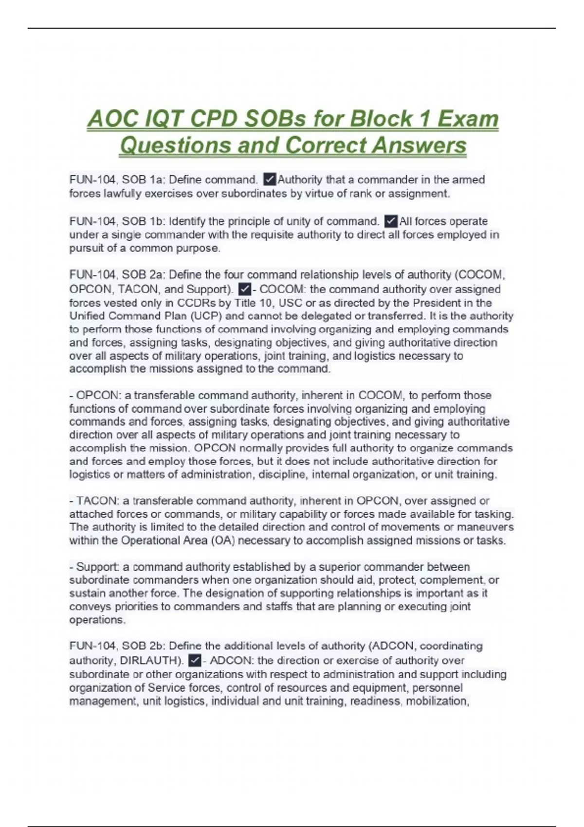 AOC IQT CPD SOBs for Block 1 Exam Questions and Correct Answers