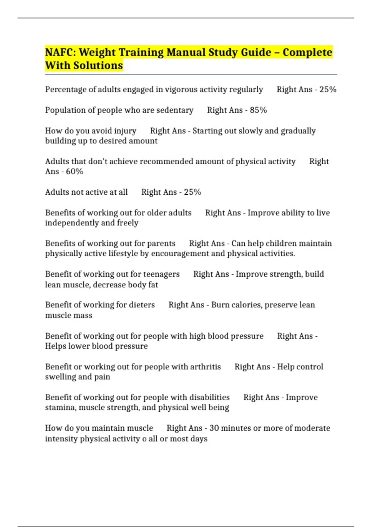 How do you maintain muscle Right Ans - 30 minutes or more of moderate