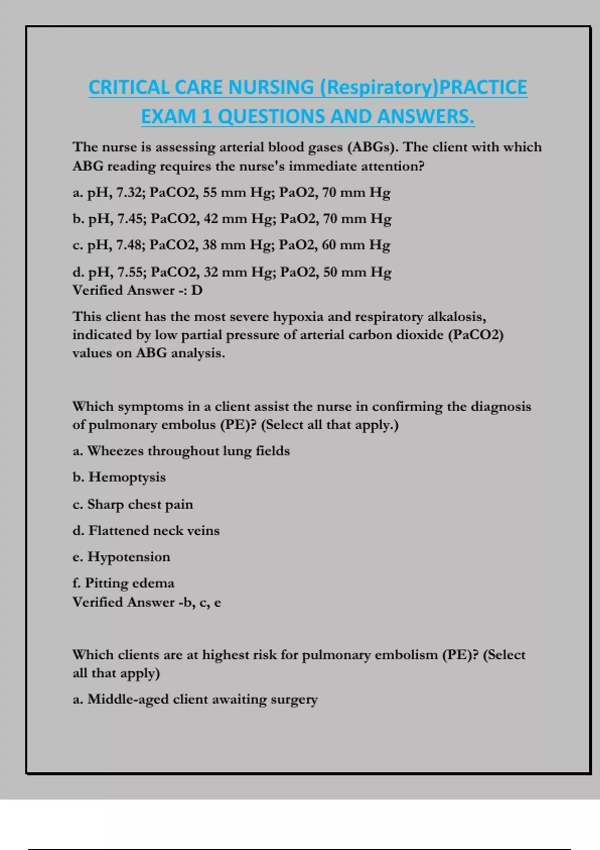 The nurse is assessing arterial blood gases (ABGs). The client with which