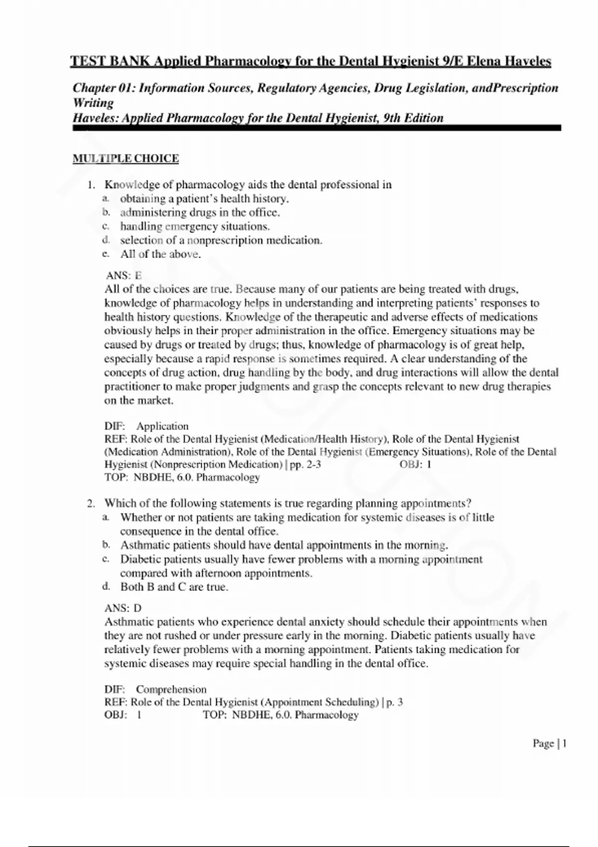 Test Bank - for Applied Pharmacology for the Dental Hygienist 9th Edition by Elena Bablenis Haveles, All Chapters |Complete Guide A+