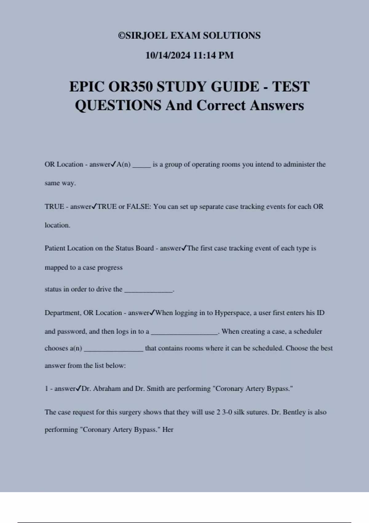 OR Location - answer✔A(n) _____ is a group of operating rooms you intend to administer the