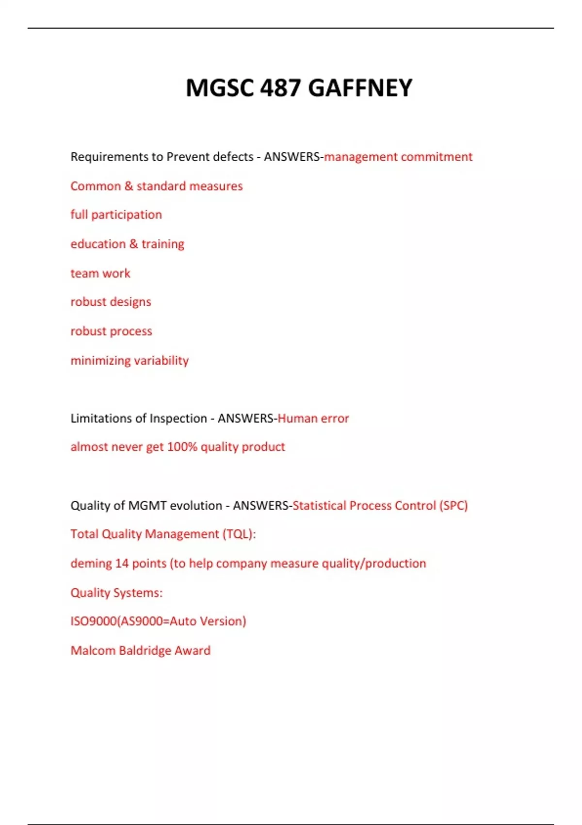 MGSC 487 GAFFNEY QUESTIONS AND ANSWER 2024